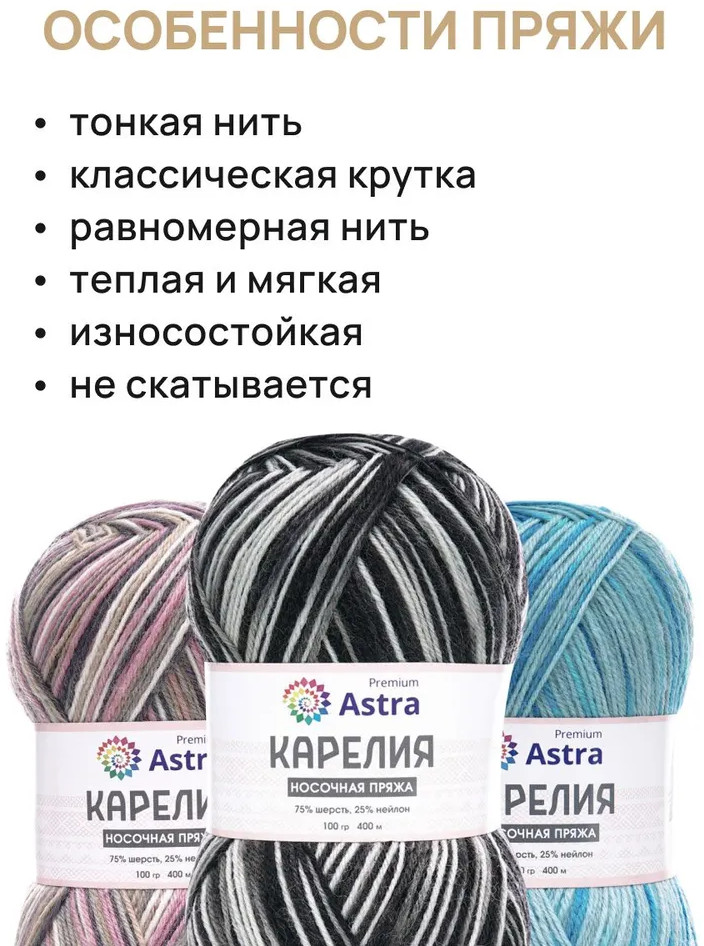 Astra Premium Пряжа для вязания носочная «Карелия. Karelia sock», цвет 1015