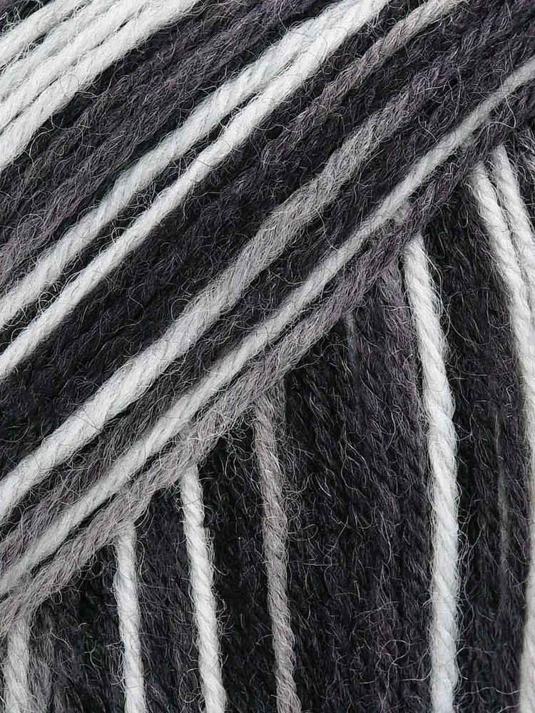 Вяжу из этой пряжи на двоечке. Экономный расход. Если без добавления другого цвета, то на невысокий носок 38-го размера расходуется 35 грамм. Из двух мотков получится три пары носок