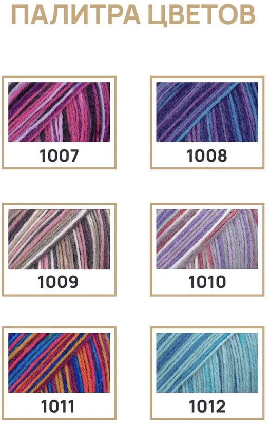 пряжа хороша для носков, эластичная, мягкая. но цвета прям как из грязи вынули, этот нежненький лавандовый пятнышками не спасает.