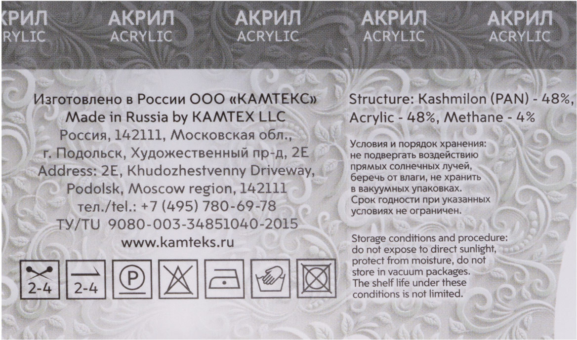 Состав: 48% кашмилон, 48% акрил, 4% метанит.