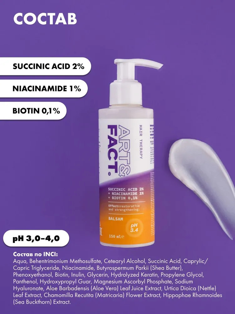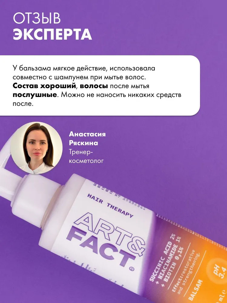 Art&Fact Бальзам для волос восстанавливающий и укрепляющий с янтарной кислотой 2%, ниацинамидом 1% и биотином 0,1%