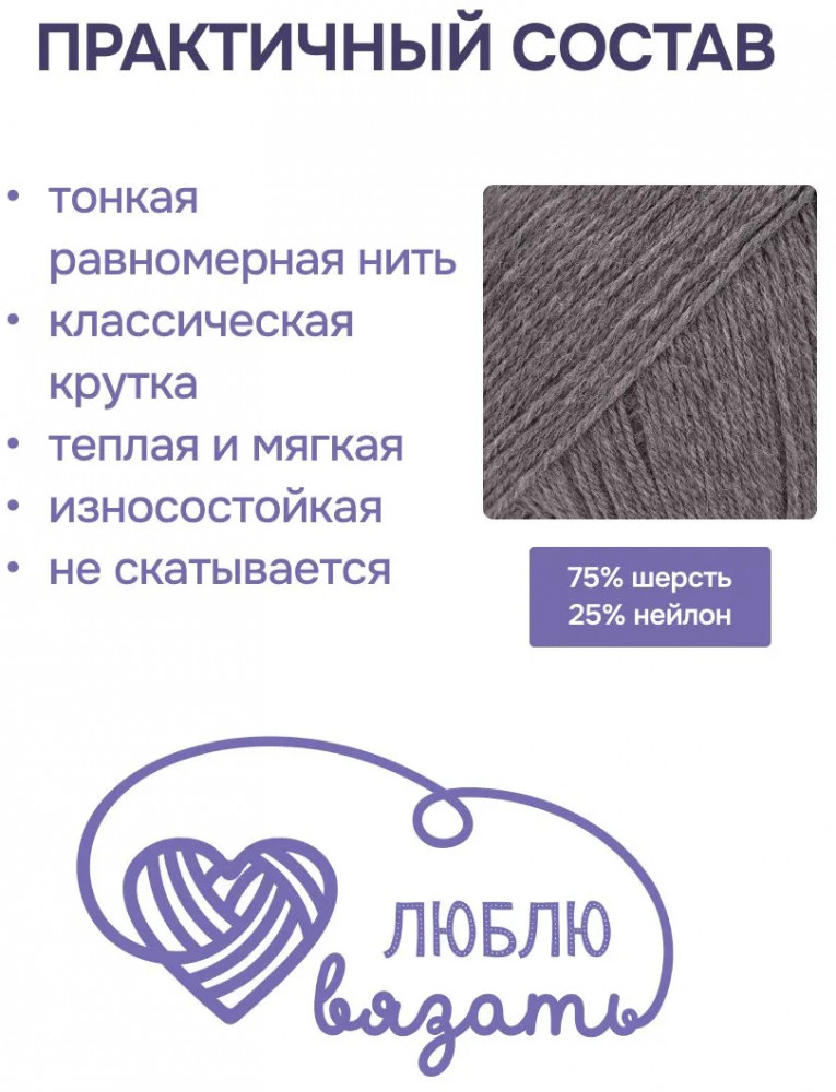 Состав пряжи тщательно подобран для достижения оптимального баланса тепла и износостойкости: 75% высококачественной овечьей шерсти и 25% прочного нейлона. Шерсть, используемая в пряже Брусника, отличается своей мягкостью и способностью сохранять тепло. Она улучшает кровообращение, обеспечивает превосходную терморегуляцию, согревая ноги в холодную погоду и отводя влагу, предотвращая перегрев. Нейлон, в свою очередь, повышает износостойкость пряжи, препятствуя образованию катышков и протёртостей, а также продлевая срок службы готовых носков, перчаток или варежек. Благодаря этому сочетанию изделия из пряжи Брусника прослужат вам долгие годы, сохраняя свою первоначальную форму и внешний вид даже после многочисленных стирок.
