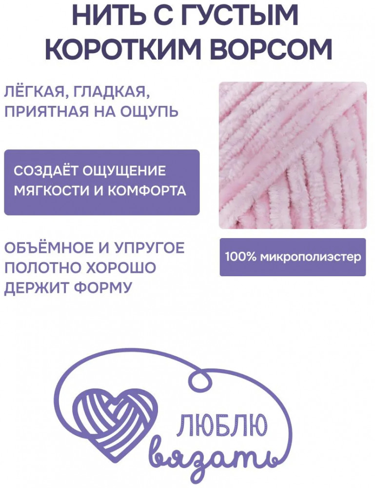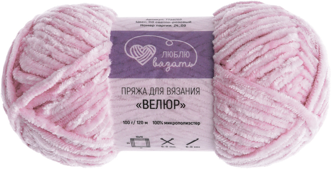Люблю вязать Пряжа для вязания «Велюр», цвет 113 светло-розовый