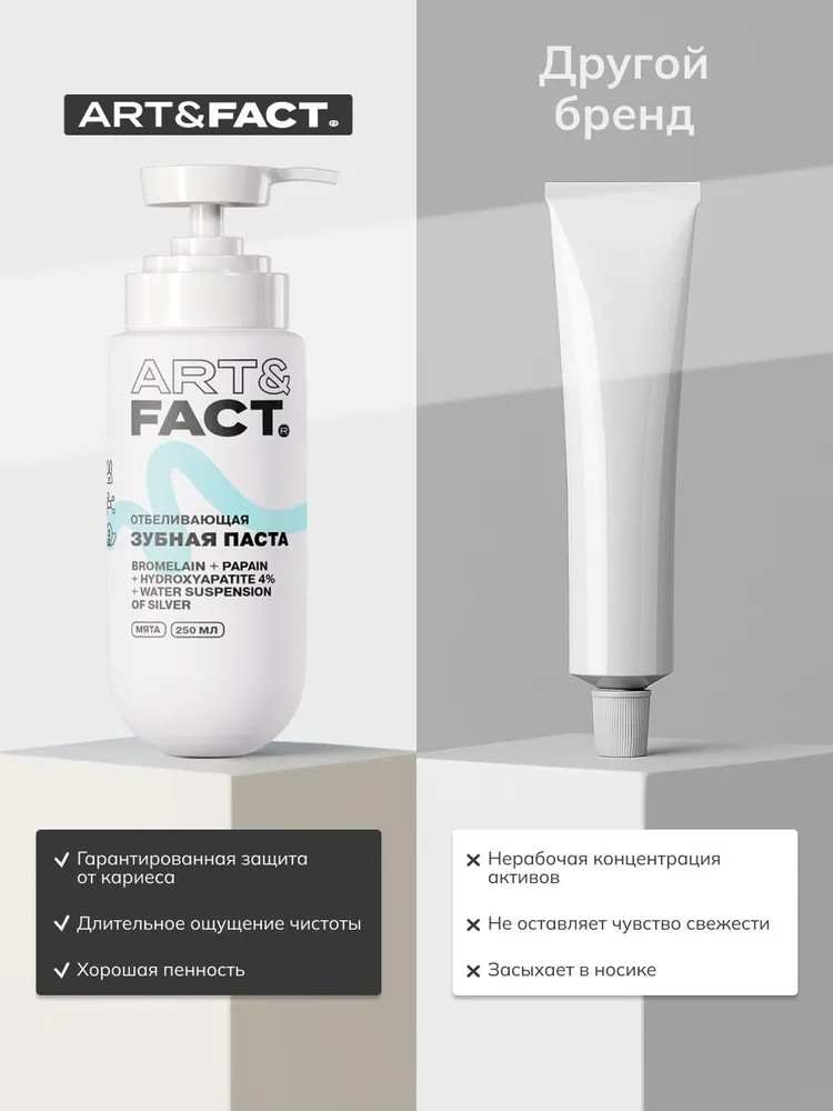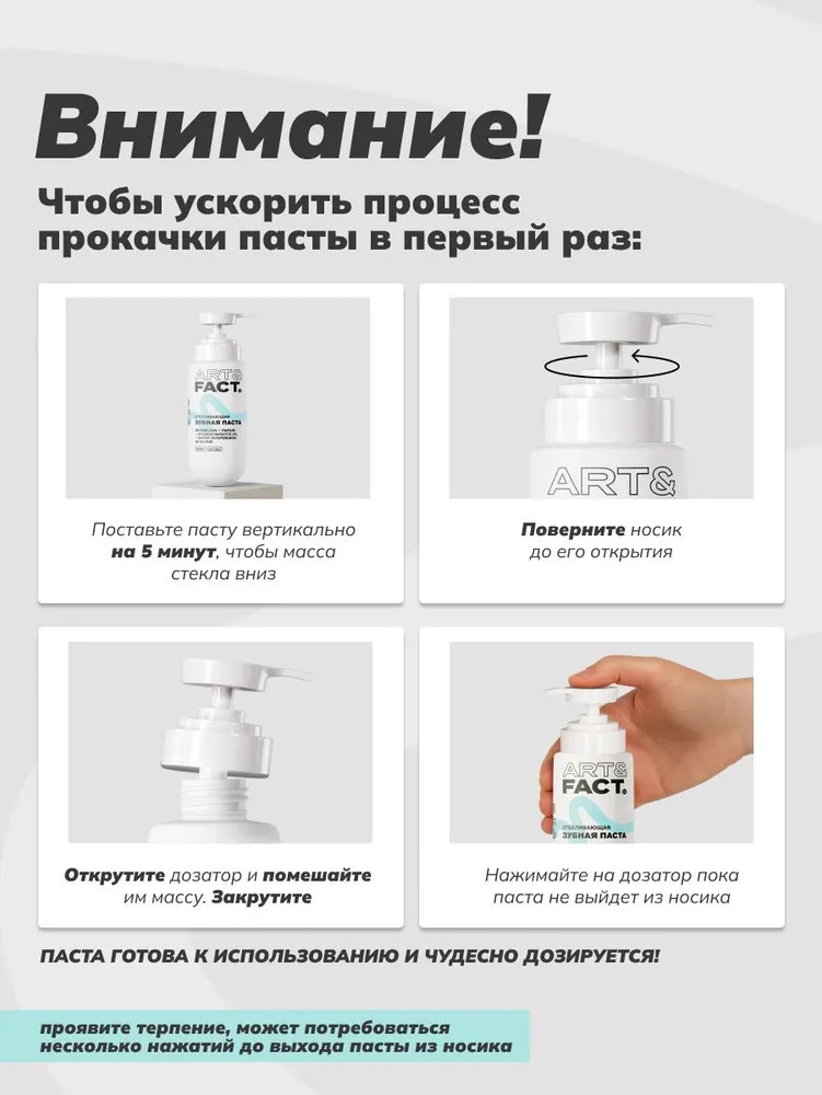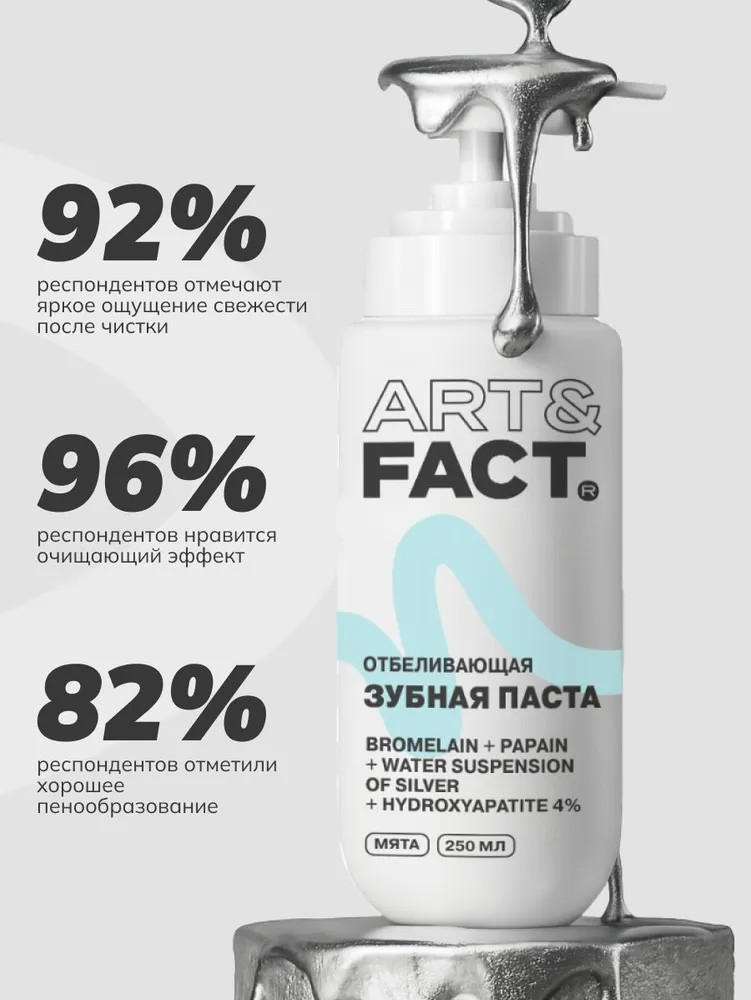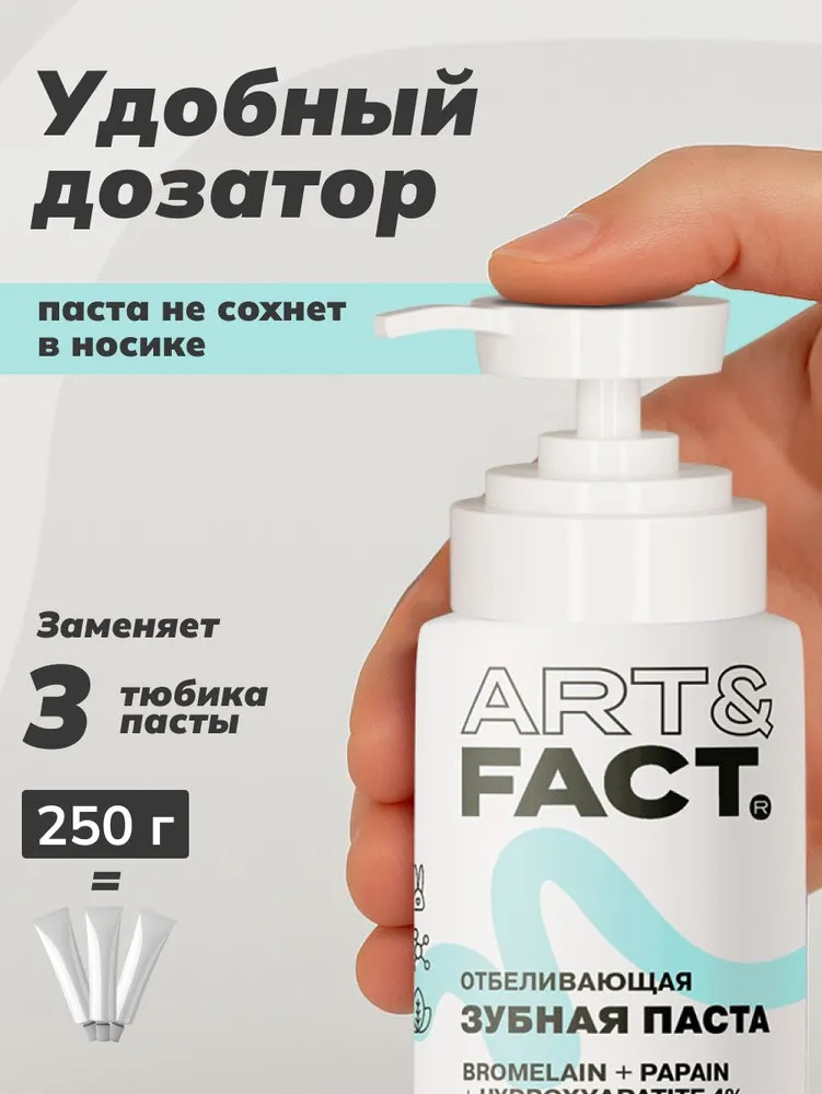 Art&Fact Зубная паста отбеливающая без фтора с энзимами, серебром и кальцием 4%