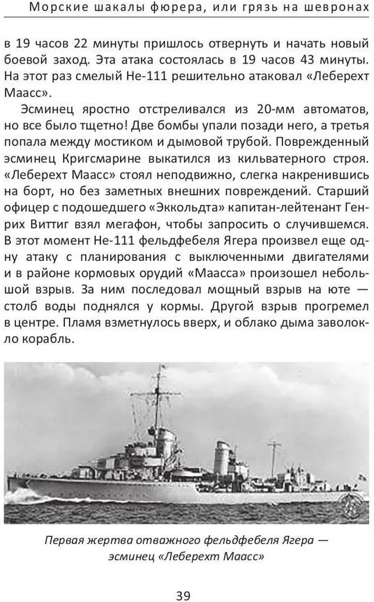 Кригсмарине, Военно-морские силы гитлеровской Германии — это организация, которая могла более-менее работать против значительно более слабой «боевой машины». Серьёзного противодействия ВМС фашистской Германии выдержать не могли, потому, что были заточены только под «лёгкую» войну (как и Люфтваффе). И каждый раз, получив полноценный удар по зубам, катились кубарем под лавочку. В общем, так. Многочисленные сказочки про «доблесть» Кригсмарине при внимательном изучении горят ясным пламенем, как эсминцы Бонте в сумрачных водах норвежского фиорда. Те случаи, когда командиры немецких крупных, от эсминца и выше, кораблей проявили себя достойно, можно пересчитать по пальцам. Одной руки. Если от выполнения своего долга можно было как-то уклониться под мало-мальски пристойным предлогом — уклонялись умело и решительно. И с профессионализмом, как военным, так и просто морским, у ребят было, мягко говоря, не вполне удовлетворительно. |