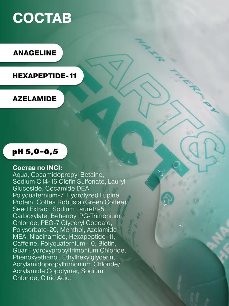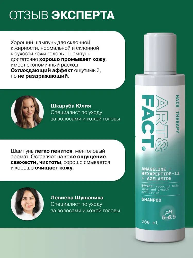Art&Fact Шампунь против выпадения волос 4в1 с анагелайном, гексапептидом и азеламидом