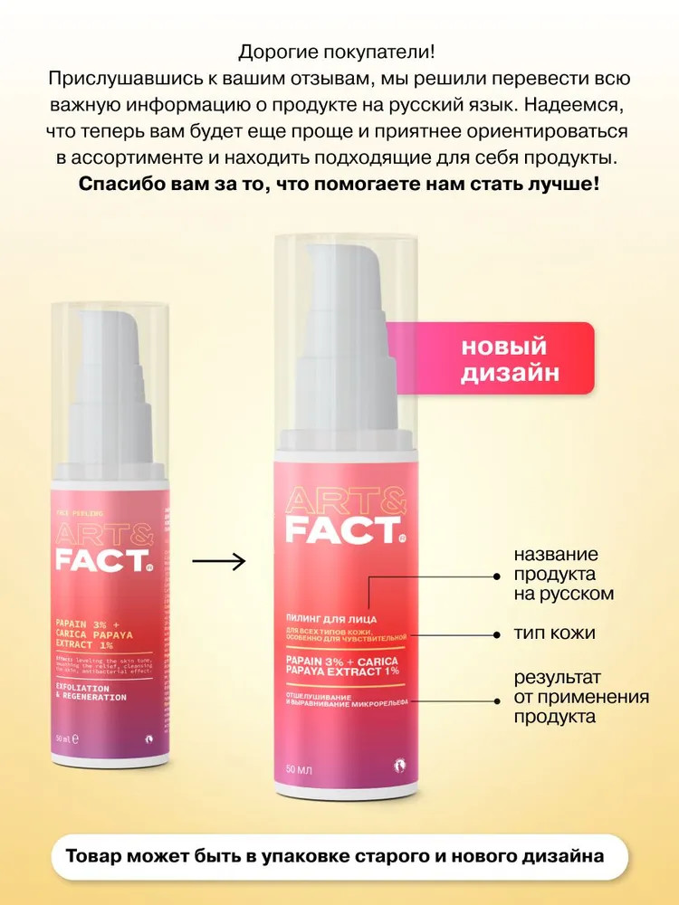 Art&Fact Пилинг-эксфолиант для кожи лица для глубокого очищения кожи с папаином и экстрактом папайи