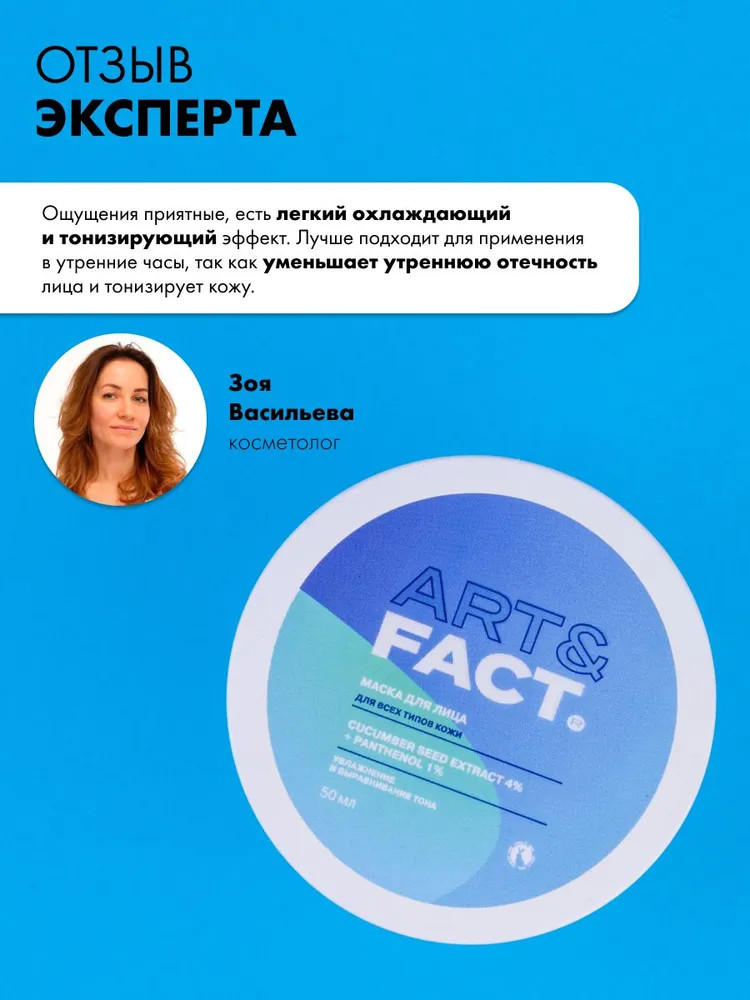 Art&Fact Маска от отеков с охлаждающим эффектом с экстрактом огурца 4% и пантенолом 1%