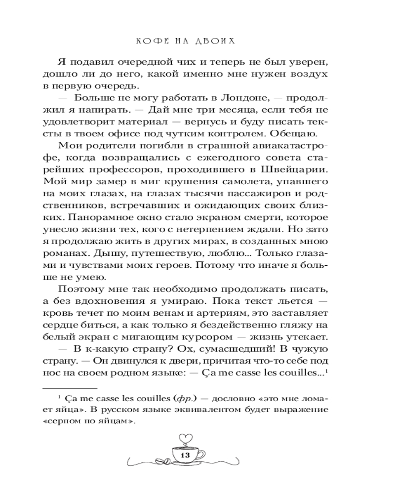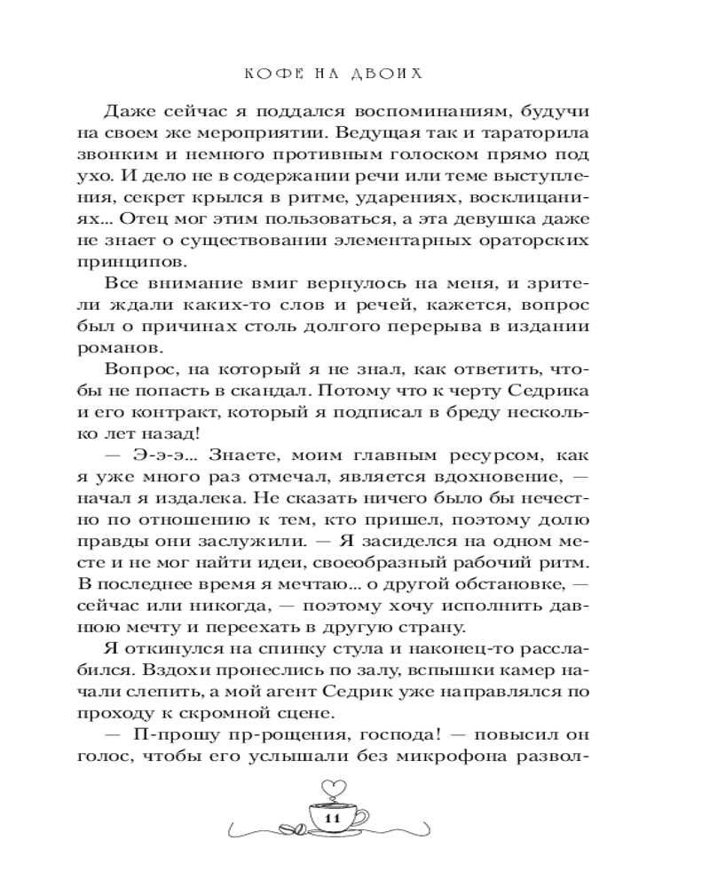 Серия: Young Adult. Кофе на двоих Я всю жизнь убеждал себя, что не существует таких чувств, как любовь и влюбленность. Я говорил себе, что это бред, женские причуды и сказки. А сейчас не знал, как назвать иначе все, что чувствовал и ощущал к Софии. Я хотел ее всю. |