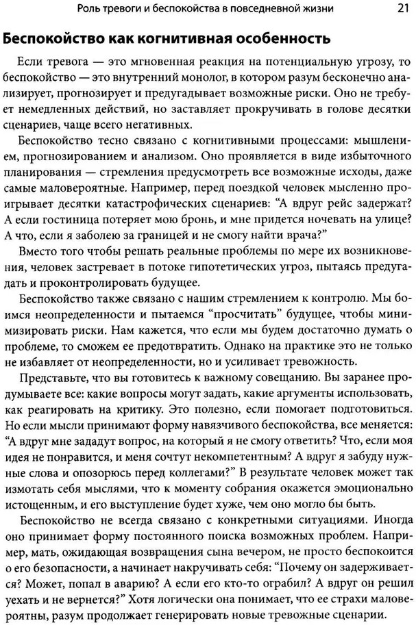 Генерализованное тревожное расстройство (ГТР) — это не просто переживания или мысленный хаос. Это хроническое внутреннее напряжение, постоянный анализ будущего и попытки контролировать неконтролируемое. Это истощение от мыслей, которые не дают покоя. Данная книга представляет собой доступное руководство по преодолению ГТР с помощью методов когнитивно-поведенческой терапии (КПТ), эффективность которых подтверждена как клинической практикой, так и научными исследованиями. Читатель шаг за шагом научится понимать природу тревоги и ее роль в психических расстройствах, различать продуктивные и непродуктивные формы беспокойства, работать с тревожными мыслями и метапереживаниями, а также развивать толерантность к неопределенности. |