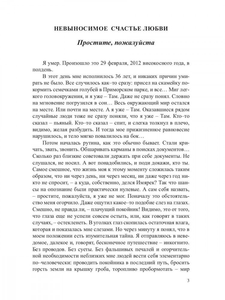 Серия: Современная проза Дорогие читатели! Прежде чем у вас возникнет желание купить эту книгу, прошу внимательно посмотреть на графический рисунок: двойной портрет Автора и его соавторов — Тараканов. Их вид может отпугнуть вас — я пойму. Должен сказать, сотрудничать с такими своенравными соавторами было очень сложно. Они прочно поселились в моих мозгах, и избавиться от их «шуршания» можно было одним способом — дать им «на съедение» толстую пачку бумаги. Я дал. Мало советуясь со мной, они наполнили книгу безумными — иногда неприличными — фантазиями, требуя серьезного к ним отношения. Возражать бесполезно. Насекомые древнее нас и лучше разбираются в изначально парадоксальном устройстве Мира. Я не снимаю с себя ответственности. Тараканы — часть меня. Когда их мыслям в мозгах становится тесно, я отпускаю их «в люди» — с надеждой, что мы вместе сумеем приоткрыть читателям «Невыносимую» тайну «Невыносимого Счастья Любви». P.S. Автор нашего двойного графического портрета — моя правнучка Сашенька Варваридзе. Как, в очень юном возрасте, она разглядела в моей голове Тараканов? Не знаю. Полагаю, это генетика. |
