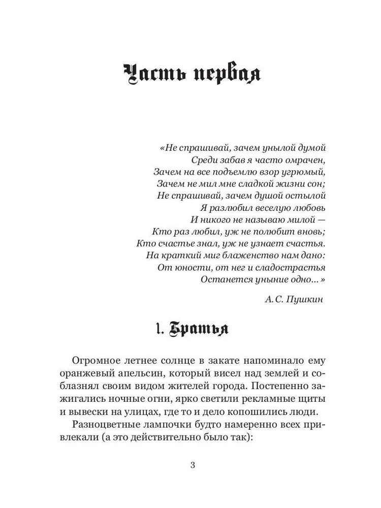 Серия: Современная проза Двое ребят, называвшие себя братьями, покидают стены детского дома и входят в новую, взрослую, самостоятельную жизнь. Их крепкая мужская дружба преодолевает все жизненные трудности. Но однажды один из них погибает, а второй впадает в глубокую депрессию, после которой его разум становится «трехуровневым». Парень начинает замечать потусторонние вещи и позже понимает, что всегда являлся не таким как все. Сможет ли он обрести гармонию с внешним миром? Кто ему в этом поможет? Ведь скоро он совсем потеряет рассудок. |
