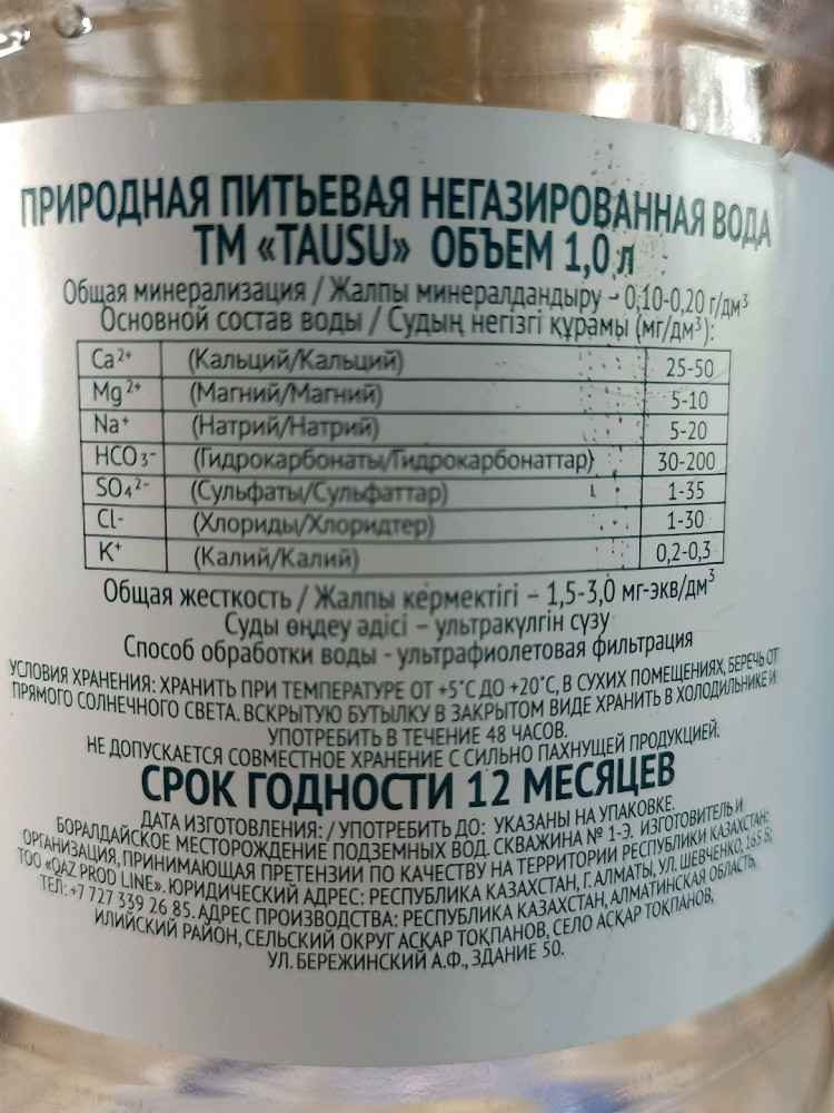 Объединенная водная компания Вода питьевая «Тау-Су»