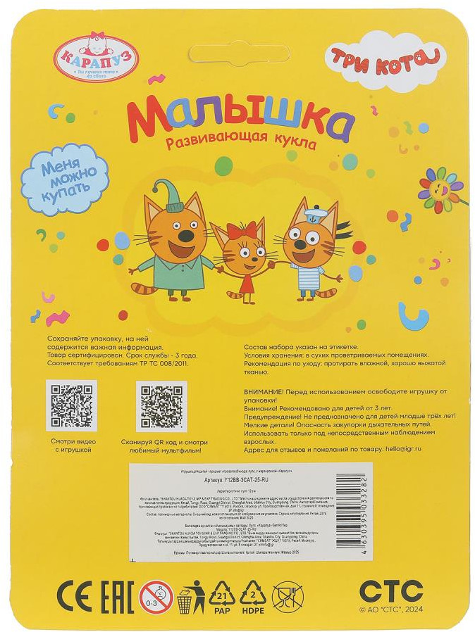 Серия: Три кота Развивающий пупс «Три кота» ТМ «Карапуз» станет прекрасным подарком для маленькой принцессы. Этот очаровательный пупс с детально проработанным личиком обязательно понравится вашей малышке. Куколка одета в красочный жёлто-оранжевый комбинезон с милым принтом. На голове — шапочка в тон. Одежда легко снимается и надевается. Милый пупс непременно вдохновит девочку на множество интересных сюжетов для игр. Благодаря компактному размеру игрушку можно повсюду брать с собой. |