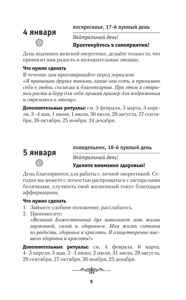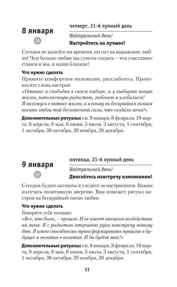 Серия: Совет на каждый день от Натальи Правдиной Согласно Ведам, древнеиндийским текстам, Луна усиливает внутреннюю «тонкую» энергию женщины. Женщина, живущая по лунному календарю, всегда прекрасна! Луна — это сила, тайна и мудрость. Согласуя свою жизнь с лунным календарем, вы раскрываете в себе Женщину-Богиню! |