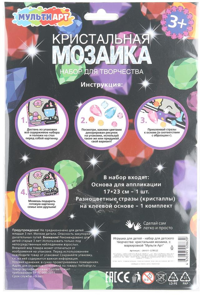 Набор для творчества — кристальная мозаика «Пушин» ТМ «Мульти Арт» — отличный подарок для вашего ребёнка, который будет способствовать развитию его творческих способностей.