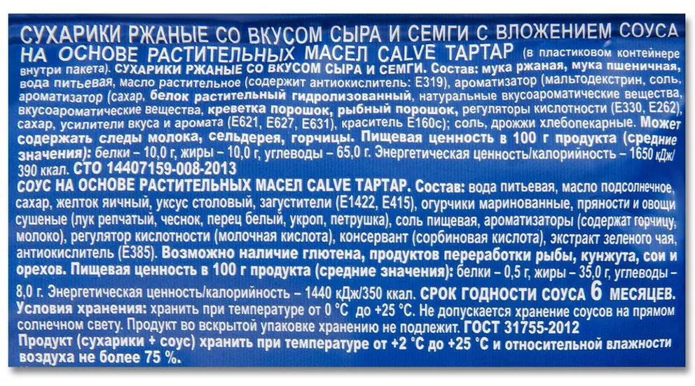 3 Корочки Сухарики ржаные «Семга и сыр с соусом тартар»