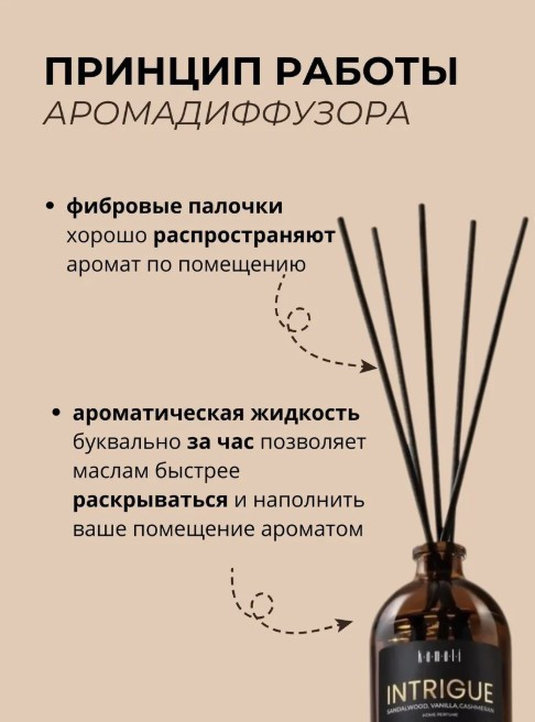 Диффузор для дома «Intrigue» — это стильный аксессуар для вашего дома, который не только освежает воздух, но и создает атмосферу уюта и комфорта. Вдохновленный ароматом Intrigue, он наполнит ваше пространство чувственными и элегантными нотами.