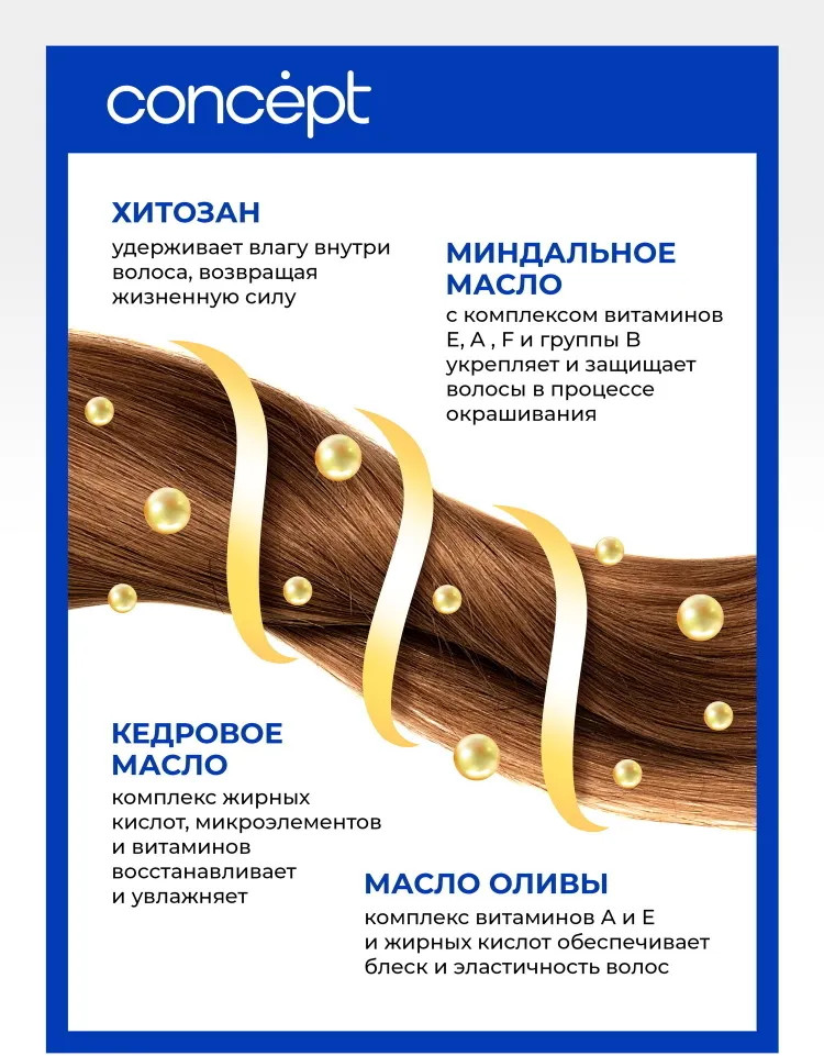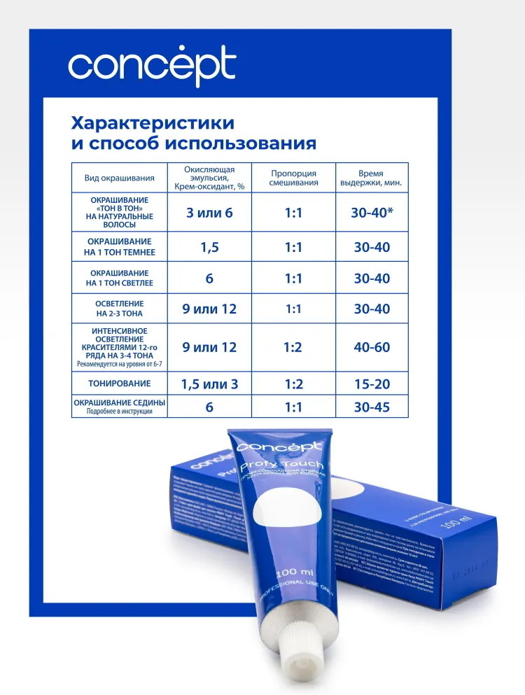 Этот краситель от Concept 10.8 при окрашиваний волос дает стабильный предсказуемый результат, не дает цвету уходит в зелень, и другие нежелательные оттенки.