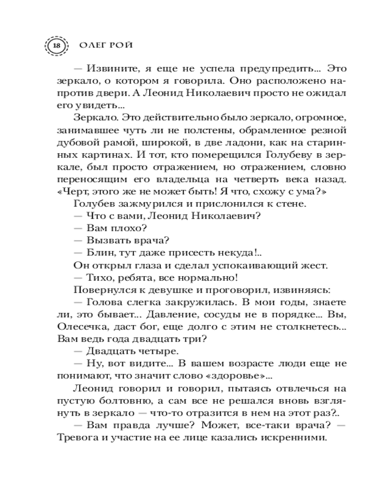 В данный момент этот товар отсутствует в продаже. Возможно, у нас найдется аналогичный или похожий товар здесь. Серия: Пазлы судьбы. Мистические романы Олега Роя. Клатчбук Успешная карьера, стабильный достаток и... одиночество. Молодость Леонида давно прошла, и вместе с ней ушло что-то важное. Зеркало в новой квартире предлагает невозможное — начать всё сначала. Но чужая жизнь оказывается не легче своей. Чтобы уцелеть, Леониду предстоит не убежать, а обнять: свою боль, свою вину, свою любовь. |