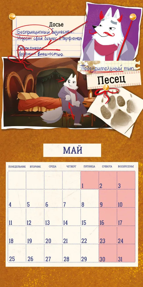 Серия: Детский календарь настенный 2026 (290×290) «Календарь настенный на 2026 год. Барсукот. Очень зверский детектив» — полезный подарок вашему ребенку. Вместе с Барсукотом он запомнит месяцы, дни недели и научится следить за расписанием. А также проведет расследование, собрав досье на каждого подозреваемого в похищении Маркизы. Названия дней недели в календарной сетке написаны полностью, чтобы ваш ребенок смог быстрее их запомнить. |