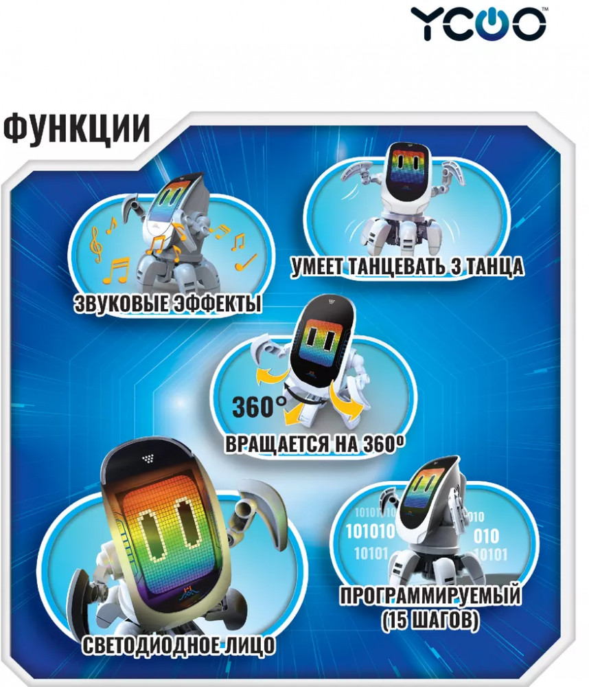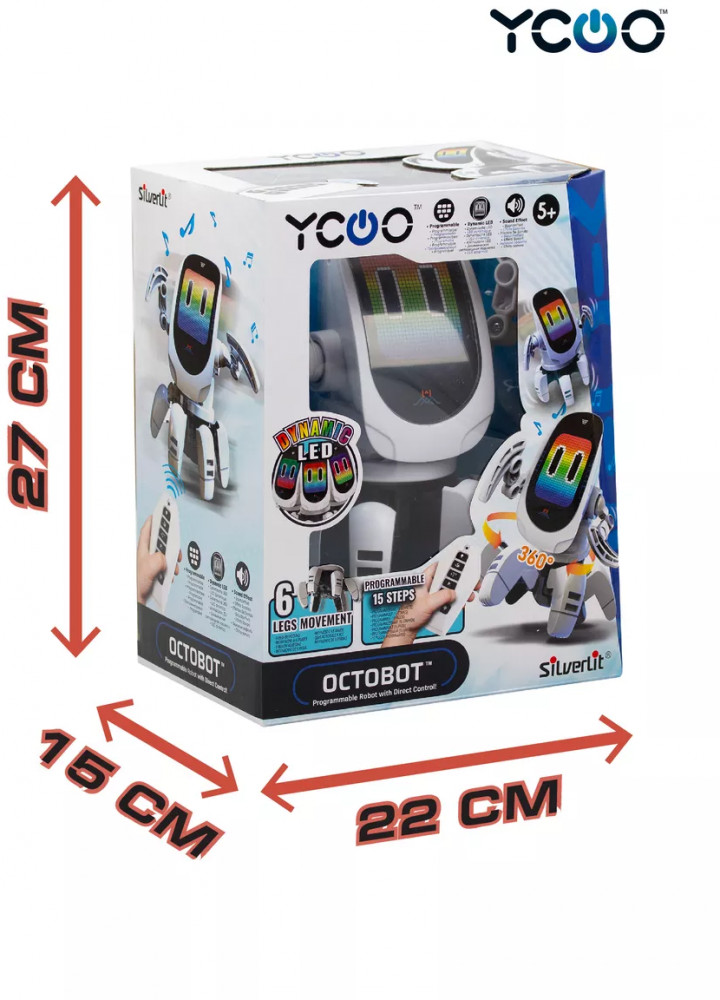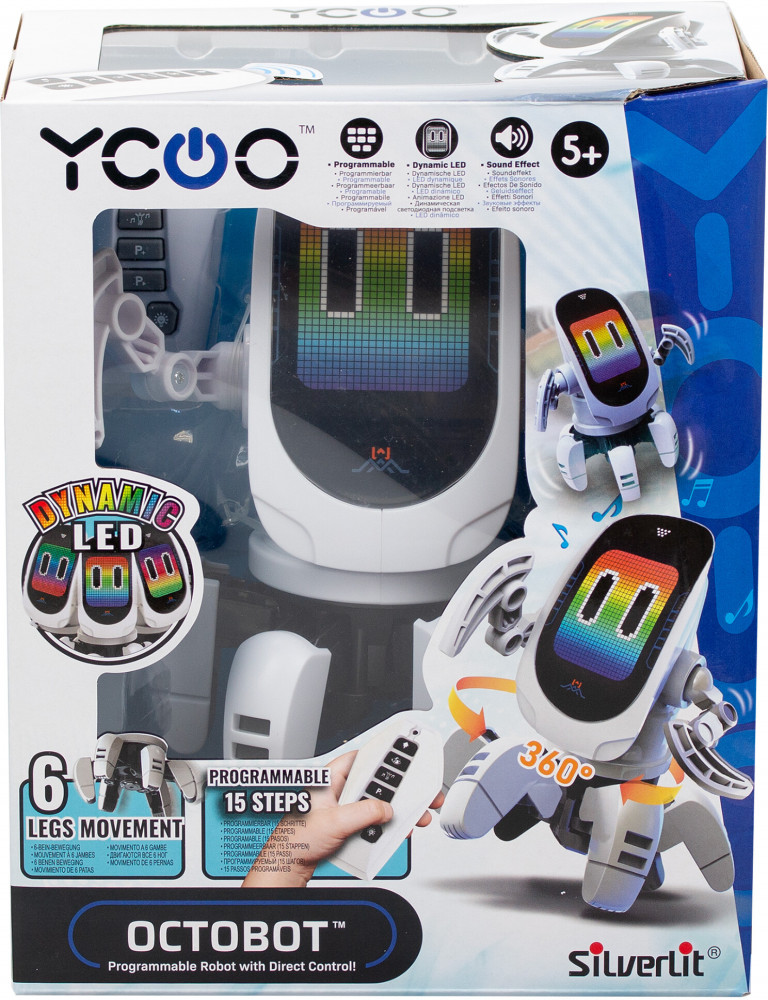 Танцующий робот Робот Октобот! Эта интерактивная игрушка оснащена всем необходимым, чтобы привнести веселье и вдохновение в игровой процесс. Октобот представляет собой танцующего робота осьминога, который может двигаться в разные стороны, поворачиваться на месте и даже подпрыгивать под музыку. Его щупальца шевелятся в такт мелодии и создают настоящую симфонию движений и световых эффектов! Лицо робота состоит из разноцветных светодиопод, которые могут менять цвет. Умный робот программируется прямым управлением и может вращаться на 360 градусов, двигаться вперед и знает до 30 различных команд, а также умеет танцевать 3 танца. Яркая подсветка делает танец осьминожки более динамичным и эффектным. Эта многофункциональная игрушка точно станет другом для малыша.