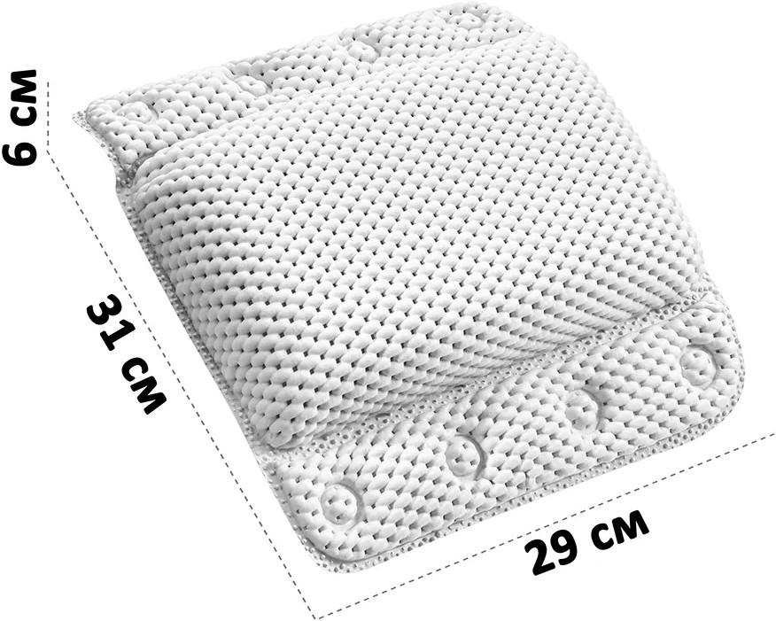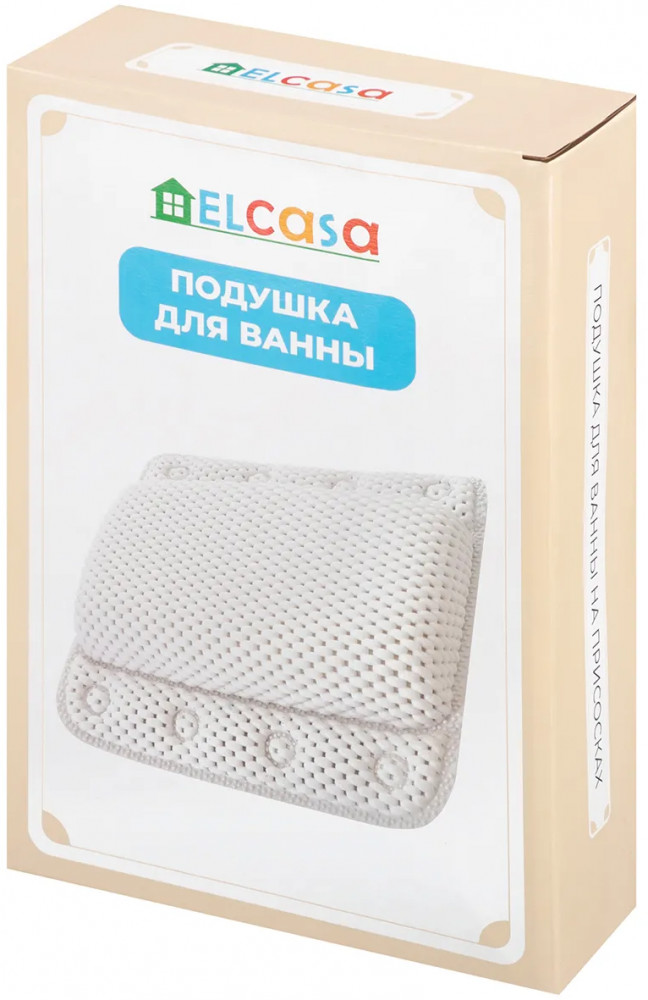 Подушка для ванны белого цвета от бренда El Casa позволит создать уголок релаксации в вашей ванной комнате! Размер изделия 31×29×6 см. Имеет приятную на ощупь поверхность и крепление в виде 8 присосок. Присоски позволяют зафиксировать подголовник на ванной или джакузи. Благодаря наполнению из губки придаёт комфорта и снимает напряжение с шеи и головы. Таким образом происходит ортопедический эффект. За счёт универсального дизайна подойдёт к любому интерьеру и обеспечит условия для полноценного отдыха. Подушечка для ванны поможет создать уют во время водных процедур и расслабиться после тяжелого дня как взрослым, так и детям. Ощутите эффект спа, не покидая собственной ванной комнаты! Материал в составе изделия легко отмывается и не впитывает запахи, поэтому обладает антибактериальным эффектом. Станет полезным подарком для женщин и мужчин на любой праздник. Подушечка для расслабления и снятия стресса пригодится каждому!