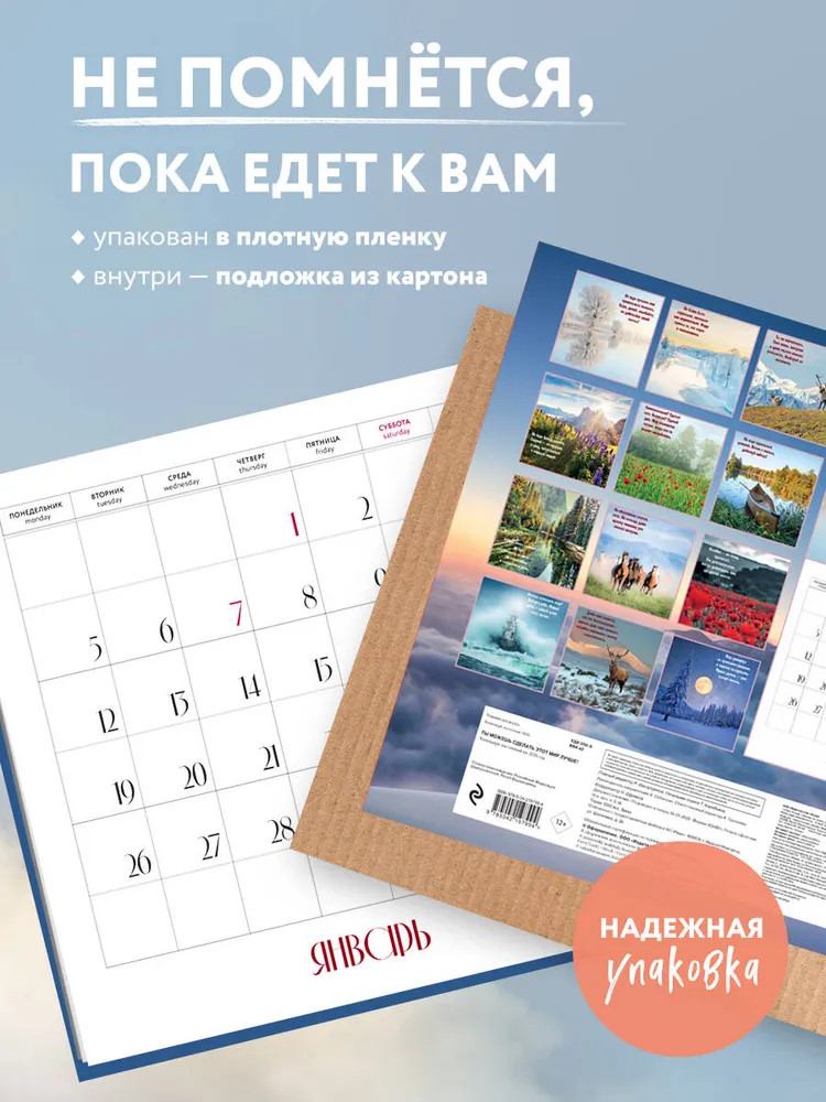 Серия: Календари настенные 2026 (300×300) В этом настенном перекидном календаре на 2026 год представлены красочные пейзажи, чтобы каждый день хотелось цвести. Начинай каждое утро с вдохновляющей цитаты, чтобы прожить день без проблем. Повесьте этот календарь в своем доме или на рабочем месте, и он достойно украсит любой интерьер. А календарный блок напомнит о важных событиях года. |