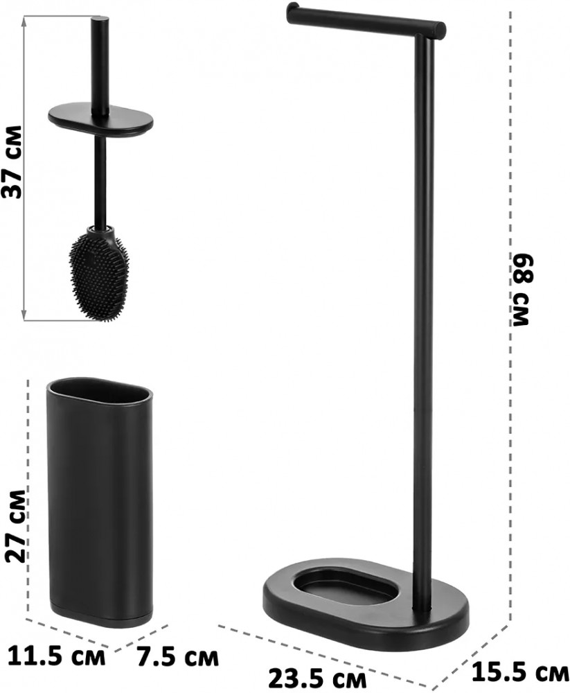 Длина ручки ёршика до овального пластикового элемента 11 см, общий размер ёршика с ручкой 37×4 см. Стильный напольный держатель подойдет к любому интерьеру ванной или туалета, от минимализма до лофт. За счёт эргономичной формы вертикальному органайзеру найдется место даже в небольшой кабинке туалета. Высокая стойка из металла с пластиковыми элементами устойчива на полу и не требует дополнительных действий при установке. Просто поставьте её на пол в санузел рядом с унитазом без всякого сверления. Все необходимые предметы гигиены будут под рукой. Не рекомендуется применять абразивные моющие средства. Поставляется в красочной картонной коробке. Бумагодержатель станет незаменимым помощником для создания комфорта в вашем доме! В коллекции бренда El Casa представлено много функциональных товаров и стильных аксессуаров для вашего дома, которые позволят создать комфорт и уют в любом пространстве.