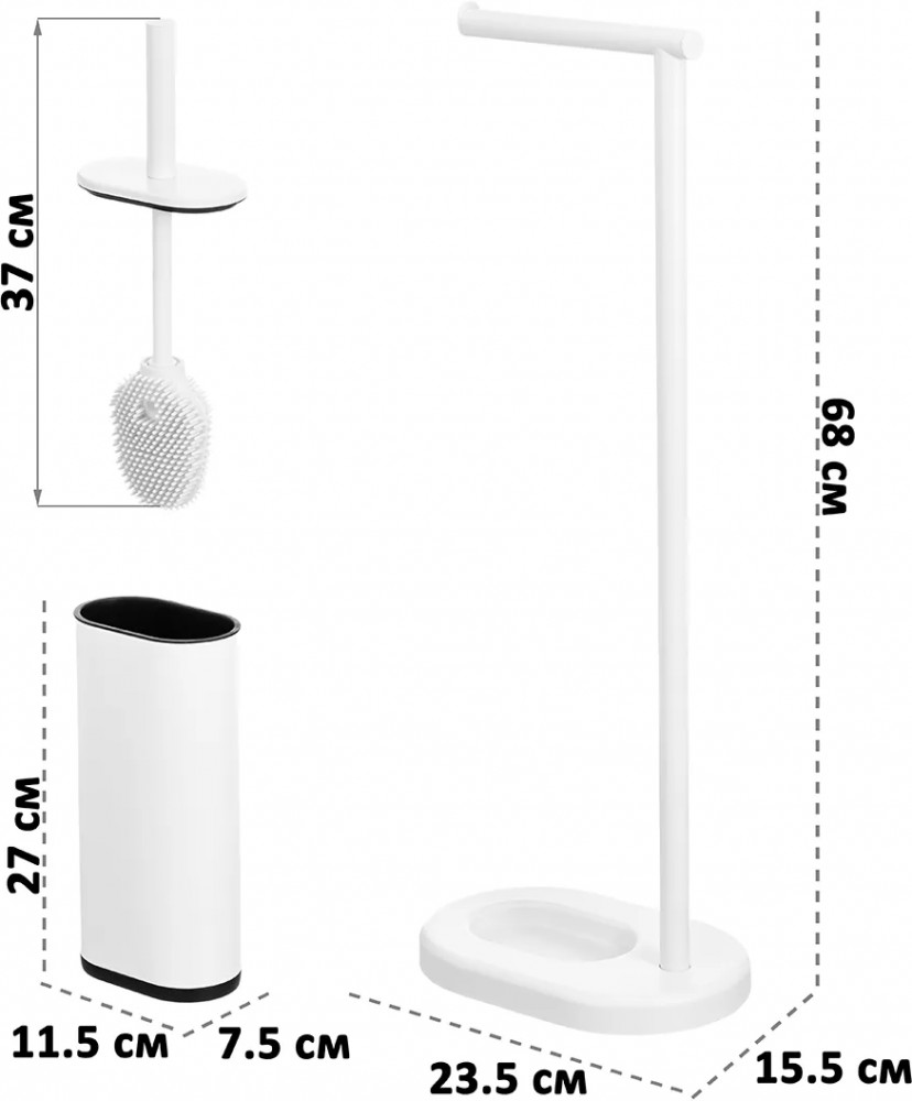Длина ручки ёршика до овального пластикового элемента 11 см, общий размер ёршика с ручкой 37×4 см. Стильный напольный держатель подойдет к любому интерьеру ванной или туалета, от минимализма до лофт. За счёт эргономичной формы вертикальному органайзеру найдется место даже в небольшой кабинке туалета. Высокая стойка из металла с пластиковыми элементами устойчива на полу и не требует дополнительных действий при установке. Просто поставьте её на пол в санузел рядом с унитазом без всякого сверления. Все необходимые предметы гигиены будут под рукой. Не рекомендуется применять абразивные моющие средства. Поставляется в красочной картонной коробке. Бумагодержатель станет незаменимым помощником для создания комфорта в вашем доме! В коллекции бренда El Casa представлено много функциональных товаров и стильных аксессуаров для вашего дома, которые позволят создать комфорт и уют в любом пространстве.