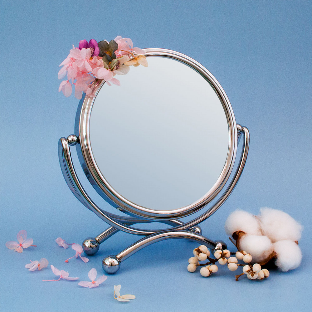 Красивое настольное зеркало для макияжа с увеличением, это яркий акцент в интерьере вашей спальни или на туалетном столике и прекрасный подарок. 10-кратное увеличение позволяет разглядеть самые проблемные участки кожи, а также позволяет наносить макияж аккуратно и с высокой точностью людям, даже с плохим зрением. |