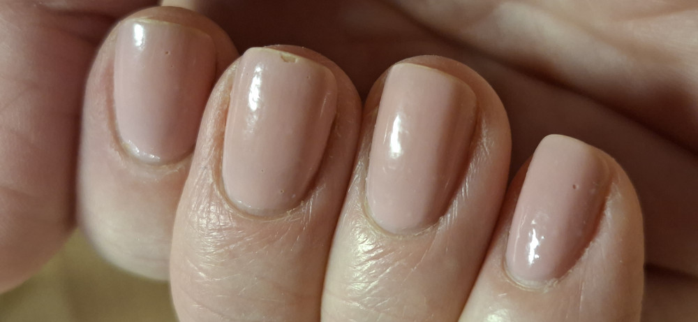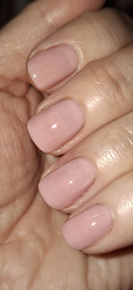 когда только нанесла маникюр, эффект мне понравился: нежный оттенок розового, не такой яркий как на фото сайта, шикарный глянец даже без перекрытия топом. Но уже на второй день глянец затерся, и стойкость этого лака никак не неделя - максимум 3 дня. Быстро пошли сколы и затирания маникюра по краю ногтя. Лак довольно быстро сохнет даже в 2 слоя, как и другая серия этого лака. Более подробные отзывы на этот и другие товары можно найти в YouTube на канале likas07. Другие оттенки из этой серии приобретать не хочется. Выкладываю фото свежего маникюра и через три дня. Первые два фото сделаны при разном освещении с вспышкой и без нее.
