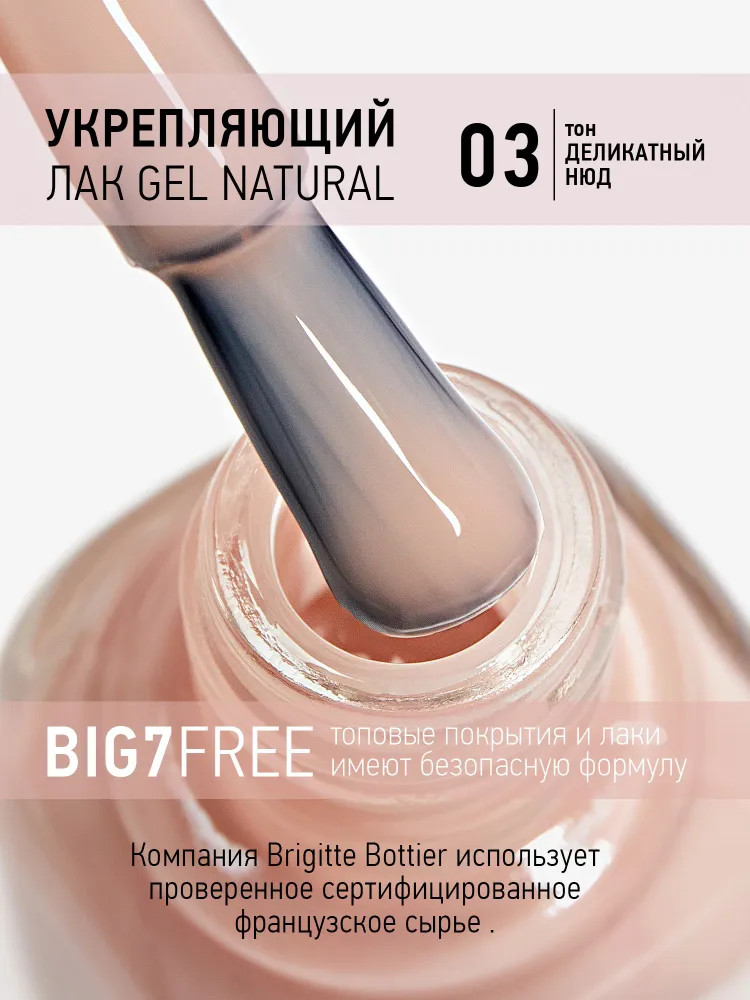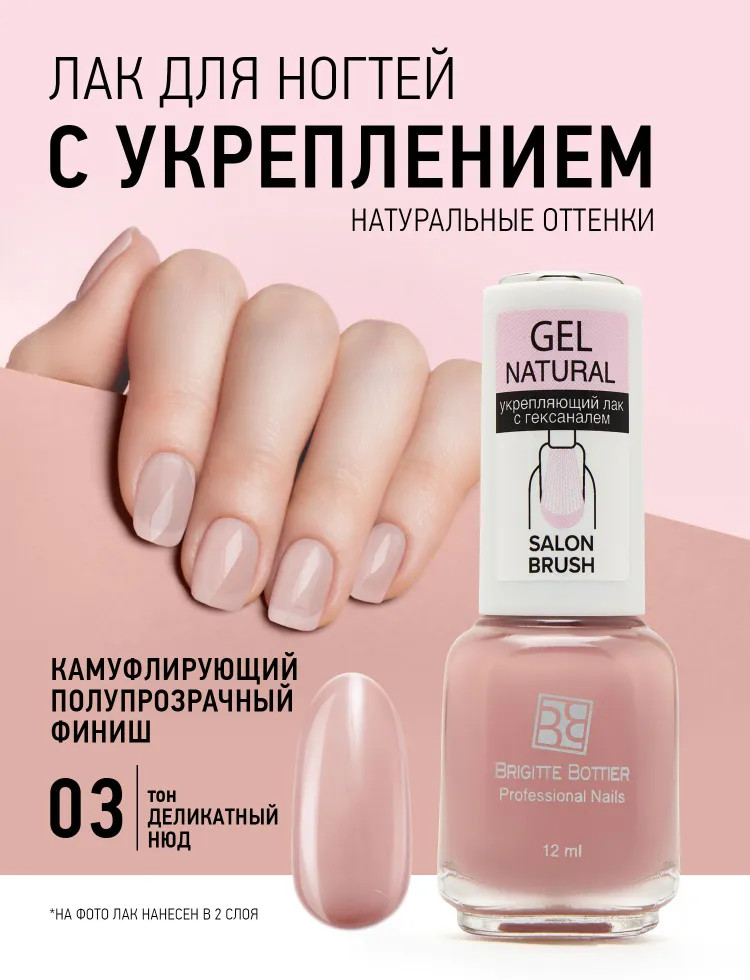 Brigitte Bottier Лак для ногтей укрепляющий «Gel Natural», оттенок 03 Деликатный нюд