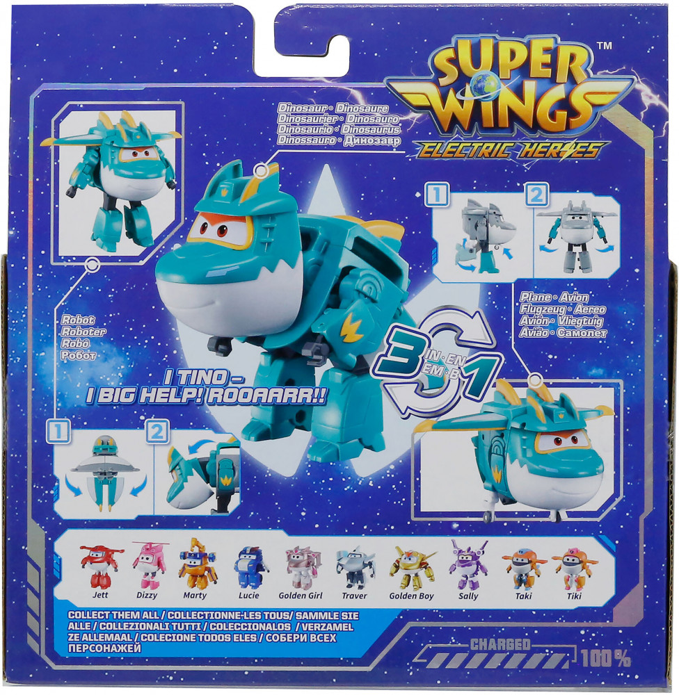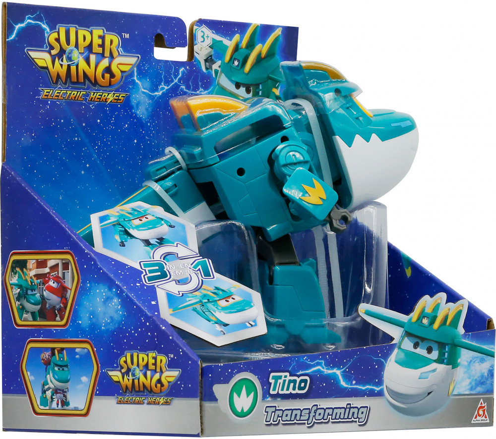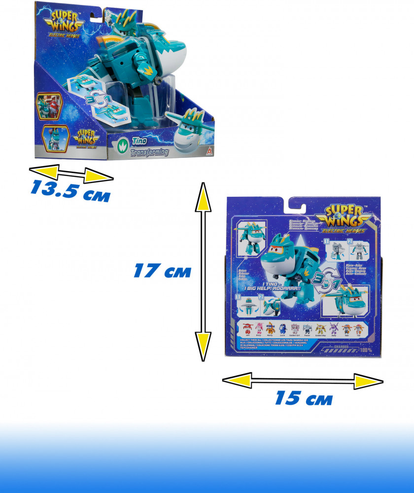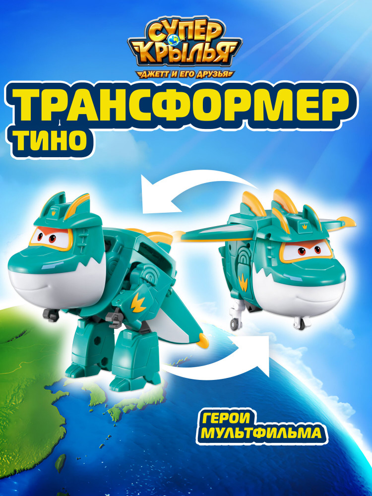 Super Wings Трансформер «Тино»В данный момент этот товар отсутствует в продаже. Возможно, у нас найдется аналогичный или похожий товар здесь. Детский трансформер 3 в 1 Тино из команды 8 сезона Супер Крыльев: Электрические Герои — удивительная игрушка с 3 режимами трансформации: Самолет, Динозавр и Робот! Тино перенесет вашего ребенка в сказочный мир веселых игр с любимыми героями популярного мультика Super Wings! Он станет отличным подарком для маленьких поклонников! Яркие цвета, качественные материалы, ноги и крылья, которые могут двигаться — привлекут внимание каждого малыша! Трансформер с множеством подвижных элементов не только добавит разнообразия игре, но и поспособствует развитию мелкой моторики и координации движений, что особенно важно во время активного роста детей! Собери всю коллекцию друзей Тино! |