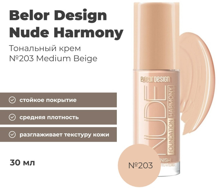 Тональный крем для лица «Nude Harmony», оттенок 203 Medium beige