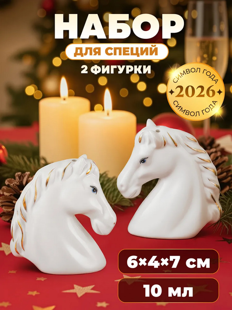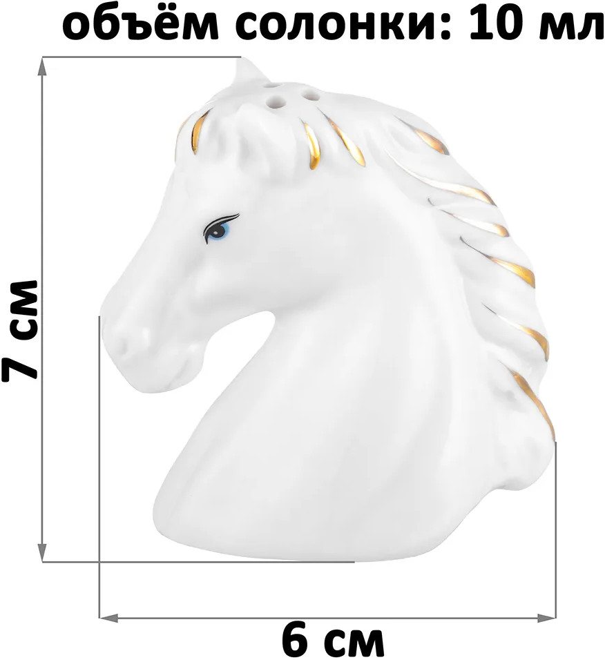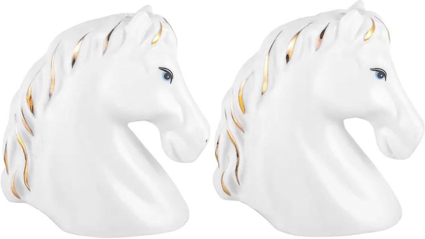 Набор для специй «Лошади» от Elan Gallery предназначен для эстетичной сервировки вашего стола. Размер каждой ёмкости — 6×4×7 см, объём — 10 мл. Выполнены из высококачественного белого фарфора. Он не впитывает цвет продуктов и легко отмывается, благодаря чему надолго сохранит свою белизну. Каждая ёмкость представляет собой фигурку в виде головы лошади и украшена золотистыми элементами. Ёмкости необычной формы позволят держать под рукой все необходимые во время приготовления еды специи и приправы. Подайте их к столу, чтобы каждый мог приправить блюда по своему вкусу. Фарфоровые контейнеры наполняются через отверстия снизу и закрываются пластиковой пробкой. Благодаря необычному дизайну стильные ёмкости выступят и самостоятельным элементом декора — они найдут место в любой части вашего дома. |