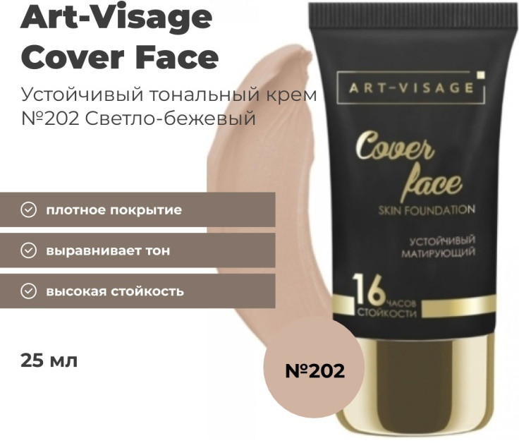 Тональный крем «Cover Face», оттенок 202 Светло-бежевый