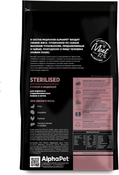 AlphaPet Корм сухой для стерилизованных кошек с индейкой и уткой