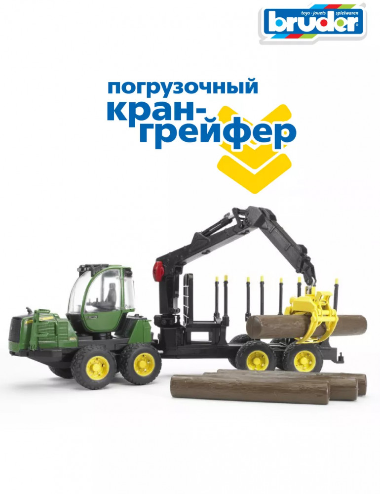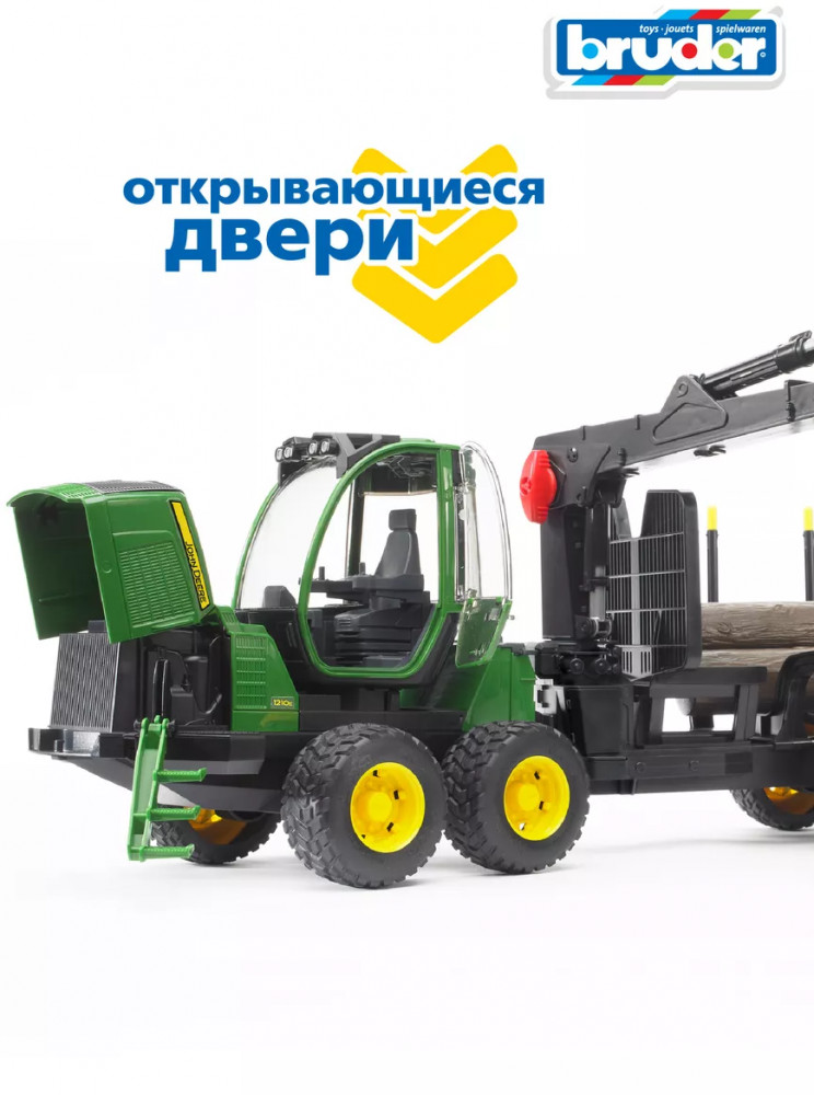 Bruder Форвардер с прицепом и аксессуарами «John Deere 1210E»+543