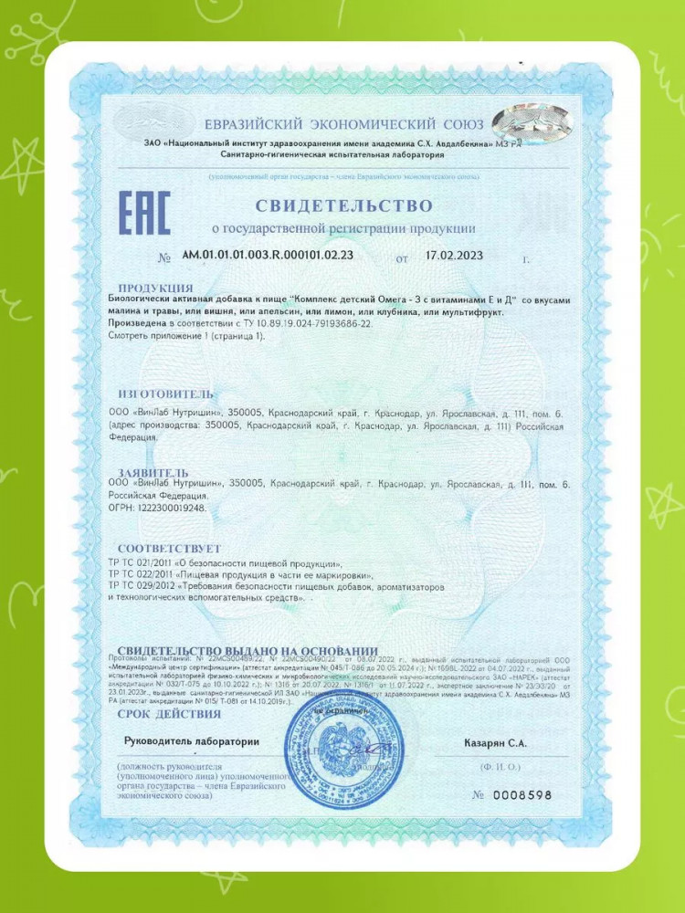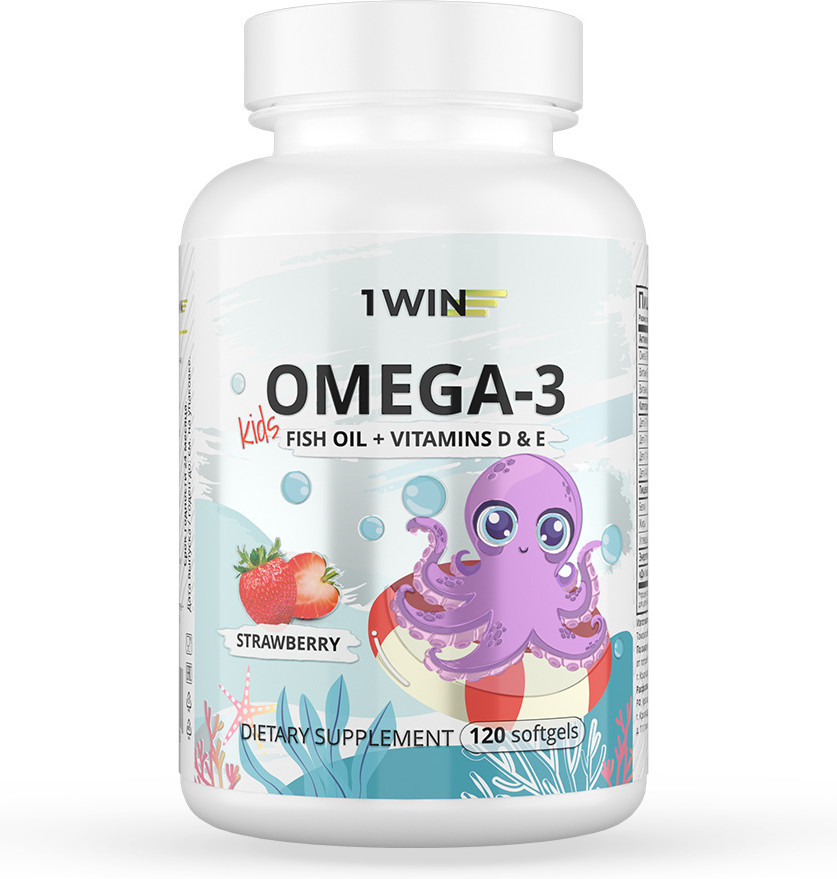 1WIN Омега-3 для детей с витаминами Д и Е со вкусом клубники «Оmega 3 Kids + Vitamins D & E»