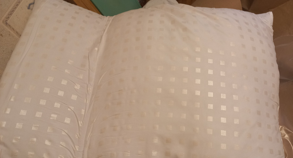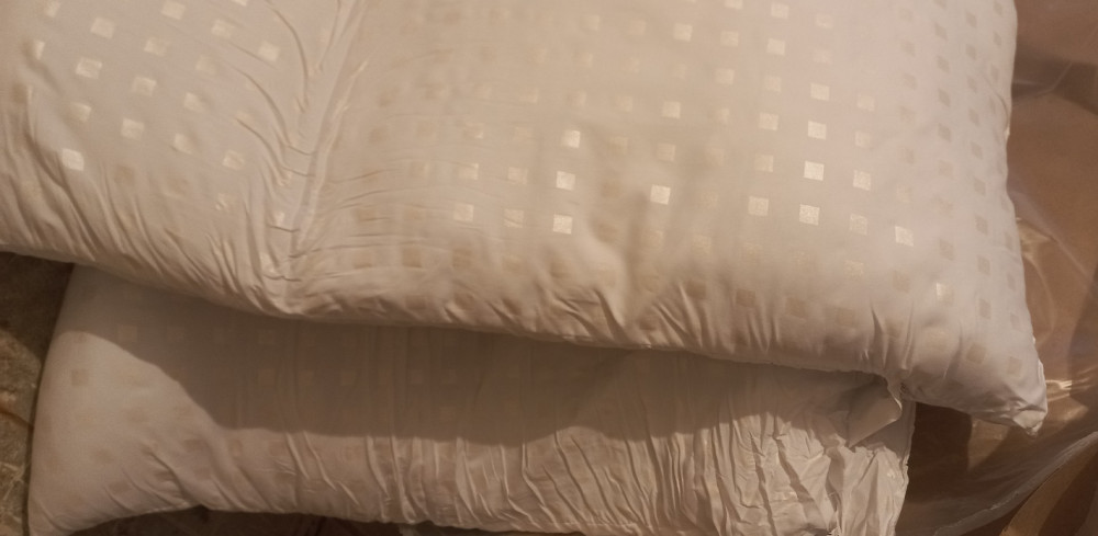 скручены в один пакет,хотя можно было по отдельности ,каждую подушку ро отдельности,из-за этого форма подушек при вскрывании пакета деформировалась. Она поднялась немного. Пакет кто-то пытался вскрыть,он был открыт немного!!! Подушки так себе,тонкие! Может кому-то нравятся именно такие.