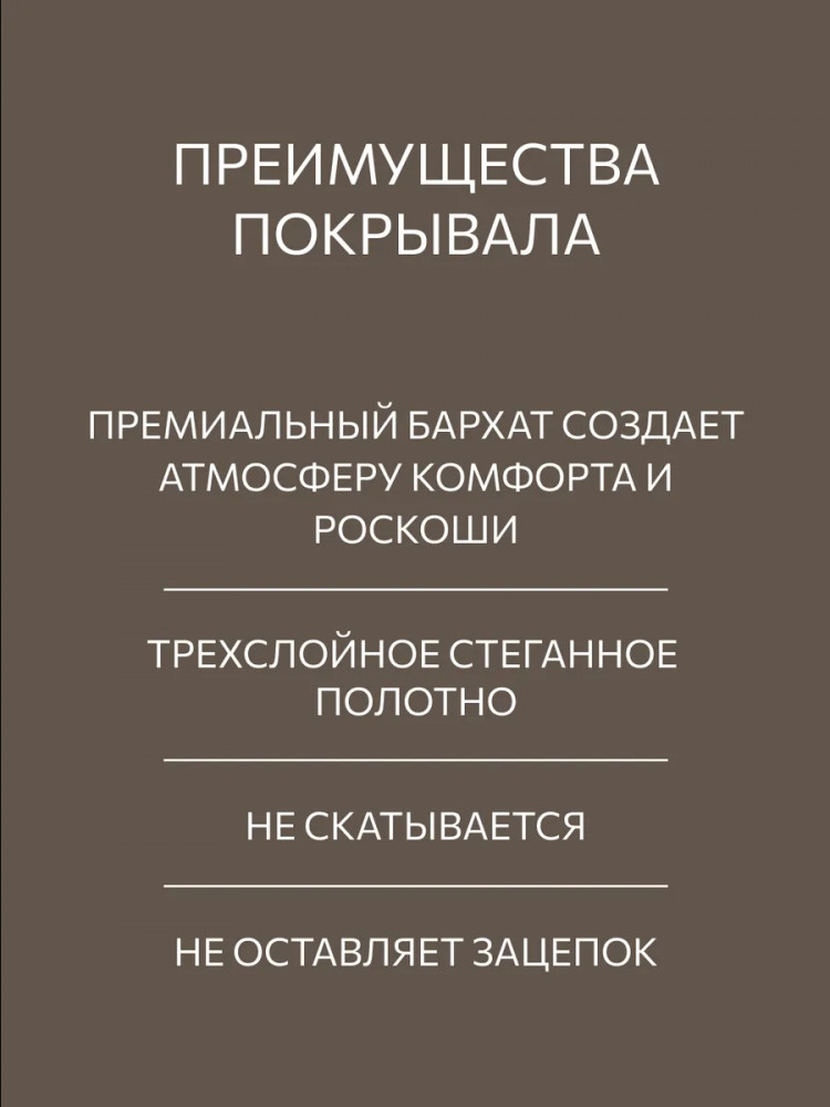 Комплект покрывала с наволочками от Guten Morgen станет прекрасным подарком для ваших близких. Универсальный набор прекрасно впишется в любой интерьер, а его высокое качество обеспечит долговечность и сохранение первоначального вида даже после множества стирок. Этот набор не только красив, но и практичен. Бархат отличается износостойкостью и лёгкостью в уходе, что делает его идеальным выбором для ежедневного использования. Кроме того, такой комплект — это отличный способ быстро и без усилий обновить интерьер спальни, придав ей новый, свежий вид.