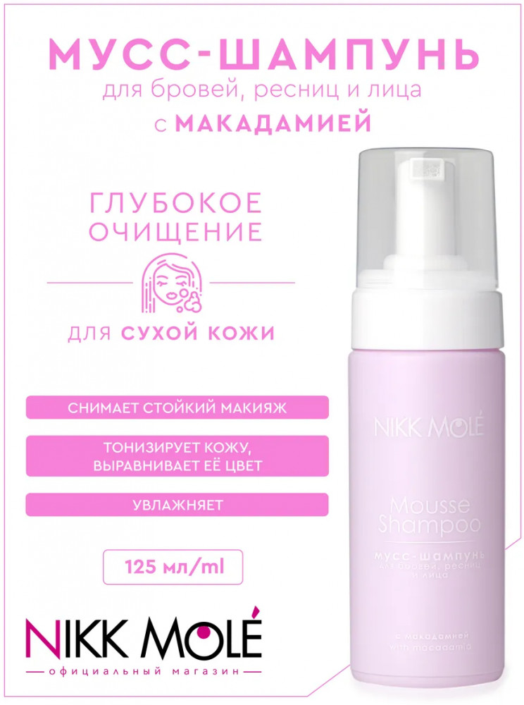 Nikk Mole Мусс-шампунь для бровей, ресниц и лица с маслом макадамии