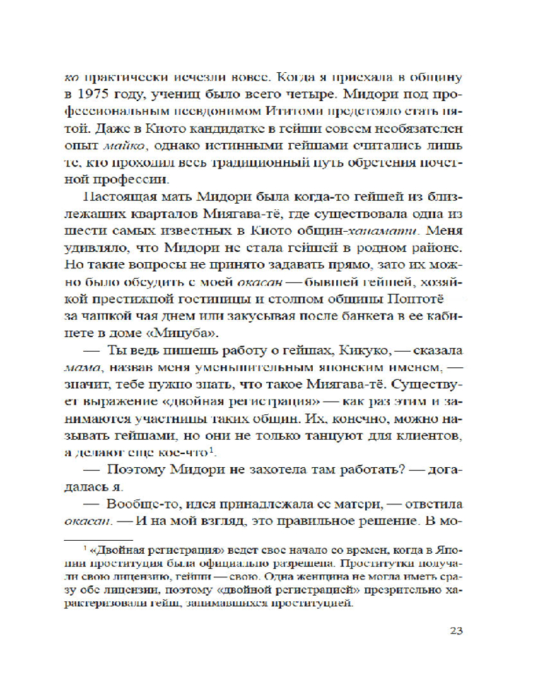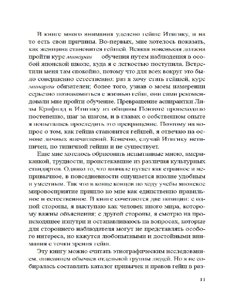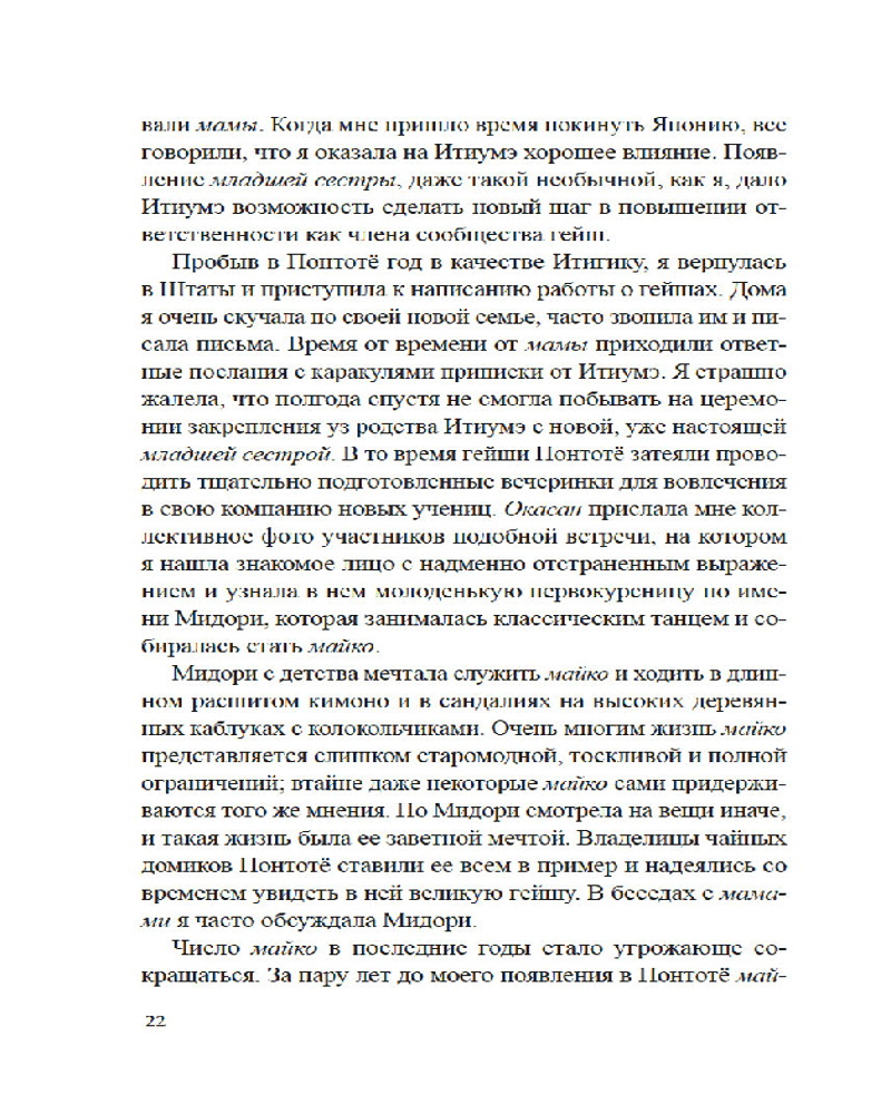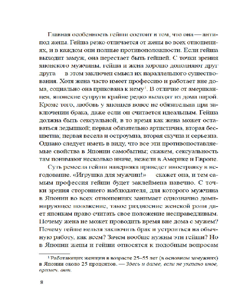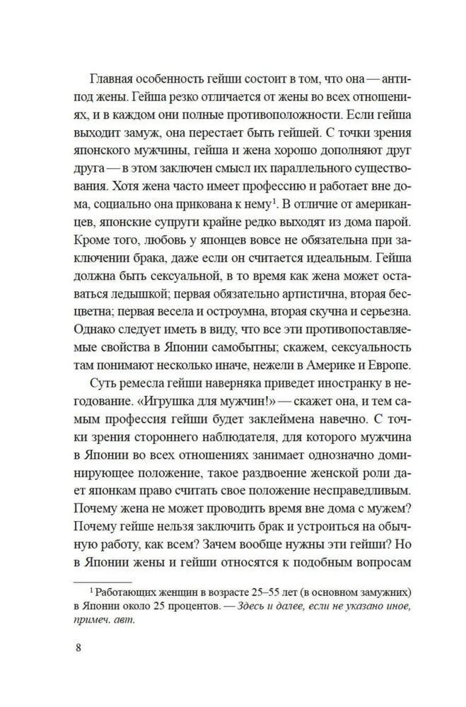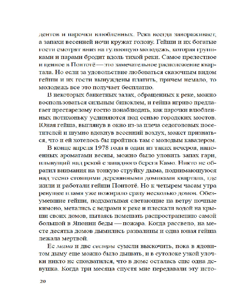Лиза Дэлби — первая в мире неяпонка, работавшая гейшей, — провела уникальное исследование загадочного и закрытого для чужаков мира изящества, красоты и традиций, который с давних времен очаровывал и увлекал Запад. Приглашая нас в самое сердце спрятанного от посторонних глаз сообщества, Дэлби подробно описывает реальную жизнь гейш, открывая нам глаза на древнюю профессию, которая продолжает выживать в современной Японии. Сегодня гейши обеспечили себе достойное место в обществе, совершив переход от законодателей моды к хранителям культурного наследия, но идеал женского очарования в сочетании с традиционным искусством, который представляет собой образ гейши, по-прежнему глубоко укоренен в Японии и вызывает восхищение всего мира.