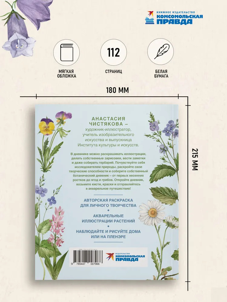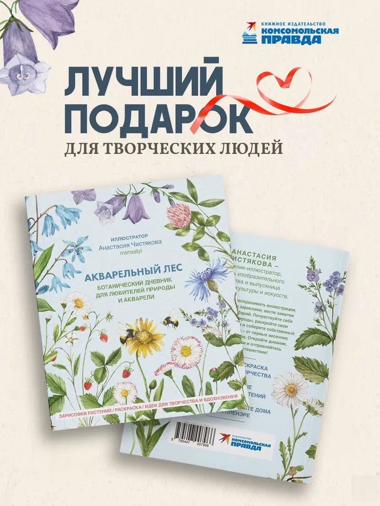 Серия: Быть Женщиной Погрузитесь в мир природы, акварели и творчества вместе с ботаническим дневником и авторской раскраской. Внутри — настоящий творческий путеводитель по лесным тропинкам: от весенних ростков до августовских грибных полян. Вас ждут акварельные изображения растений, страницы для собственных зарисовок, заметок и даже гербария. Анастасия Чистякова — художник-иллюстратор, учитель изобразительного искусства и выпускница Института культуры и искусств — делится личными находками: как подбирать материалы, рисовать с натуры и выстраивать ботаническую композицию. Откройте дневник, возьмите кисти, краски — и отправляйтесь в акварельное путешествие! |