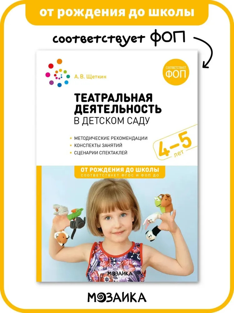 Серия: От рождения до школы Автор данного пособия предлагает свою оригинальную методику проведения занятий с дошкольниками 4-5 лет в театральной студии, раскрывает содержание и особенности организации театральной деятельности в дошкольном образовательном учреждении. Пособие адресовано воспитателям дошкольных образовательных учреждений, педагогам дополнительного образования, а также студентам педагогических вузов и колледжей. |