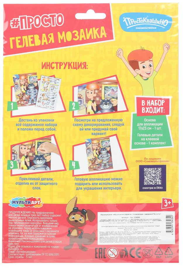 Multi Art Мозаика гелевая «Простоквашино»В данный момент этот товар отсутствует в продаже. Возможно, у нас найдется аналогичный или похожий товар здесь. Серия: Союзмультфильм Набор для творчества — гелевая мозаика «Союзмультфильм. Простоквашино» ТМ «Мульти Арт» — отличный подарок для вашего ребёнка, который будет способствовать развитию его творческих способностей. С помощью этого набора юный художник сможет самостоятельно создать необычную аппликацию с изображением персонажей любимого мультфильма. Готовую поделку можно подарить близким или использовать для украшения интерьера. |