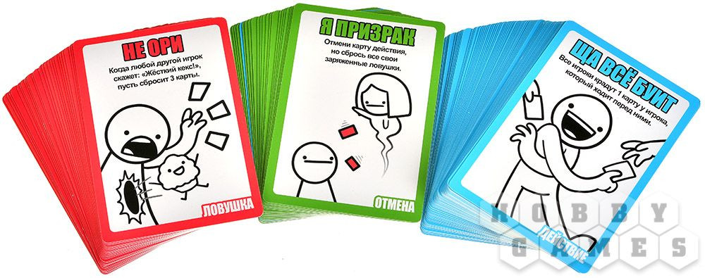 Это лёгкая карточная игра с двумя главными правилами. Первое — все против всех. Второе — слушаться карт. Вы будете тянуть их из общей колоды, потихоньку собирая свою собственную. На картах написаны действия, которые придётся выполнить вам или, в зависимости от их типа, вашим соседям. Действия эти зачастую зловредные, но очень весёлые и не дадут заскучать. Почему? Да потому что не позволят спокойно сидеть на месте — вы будете и петь, и плясать, и чёрт его знает что ещё. Только не забывайте поглядывать на соперников — вдруг они слишком близко подобрались к победе? |