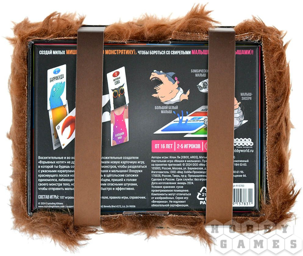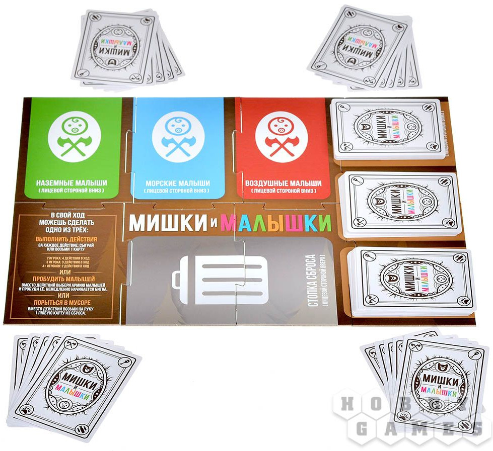 💳 Оплатить за товар можно при получении 🇰🇿 Есть бесплатная доставка по Казахстану 🎁 Копите бонусы с каждой покупки «Мишки и малышки» — лёгкая и забавная карточная игра, в которой вы будете собирать картонных мишек и прочих монстров, чтобы потом выступить против армии малышек. Дайте волю своей фантазии и создавайте существ, которых ещё не видывал свет! Но не забывайте и о стратегической составляющей, ведь ваши «солдаты» должны получиться не только нелепыми и смешными, но и сильными — только так вы сможете переиграть непослушных малышей. |