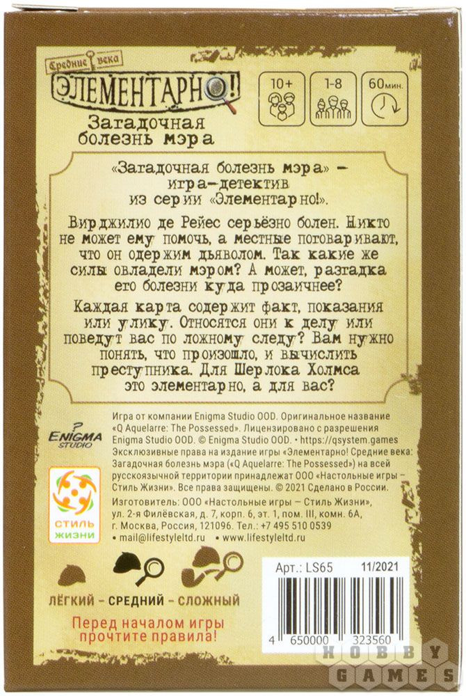 Стиль Жизни Настольная игра «Элементарно! Загадочная болезнь мэра»-23%